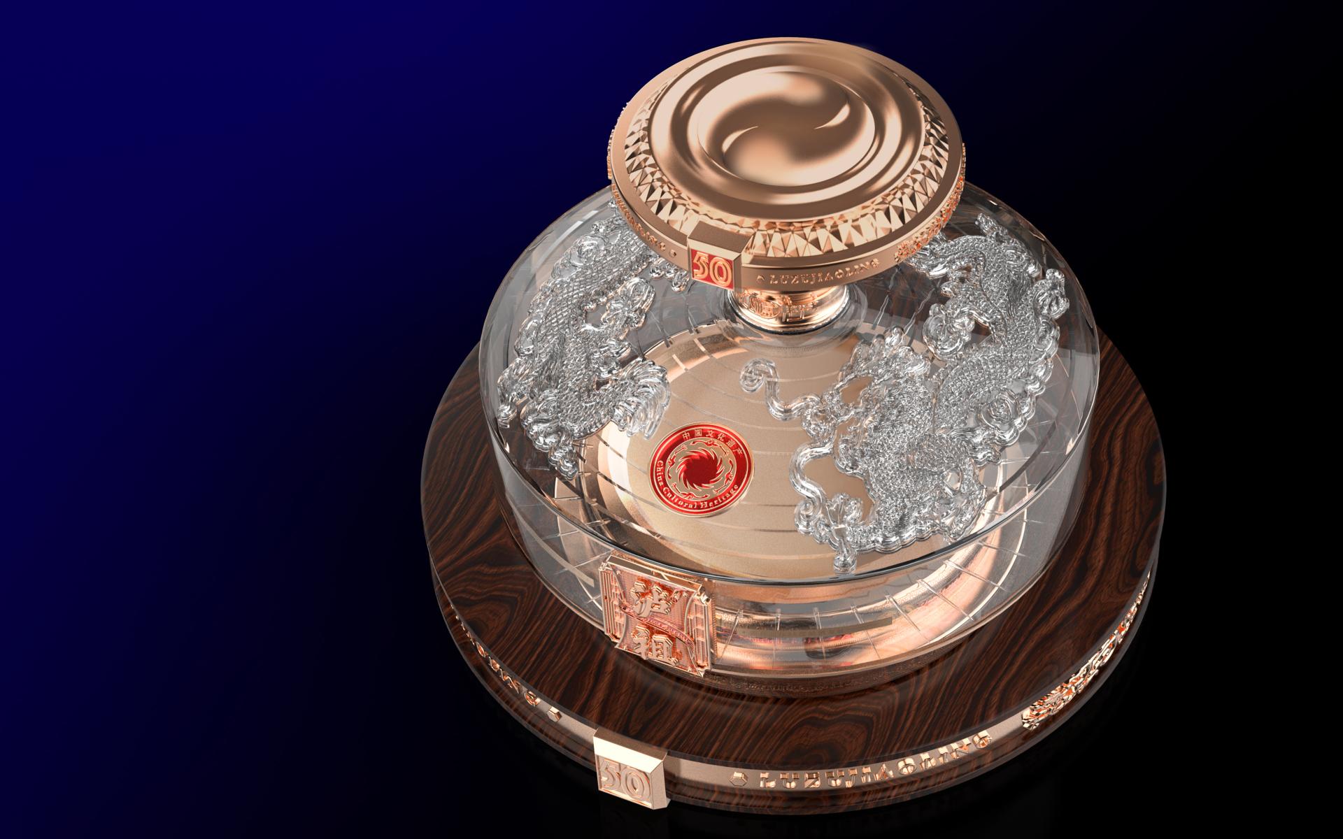 In terms of design elements, the bottle shape is designed by designers with circular culture, dragon culture, and Qiankun culture. The bottle design is creatively designed in a circular shape with nine steps on top, symbolizing the rising Chinese ideology. Combined with the shape of a dragon, the design is exquisite. On the front logo design, the designer combined hourglass wear with a red ribbon. The hourglass represents time, the red ribbon represents celebration, and 50 years to half a century of heritage and craftsmanship.