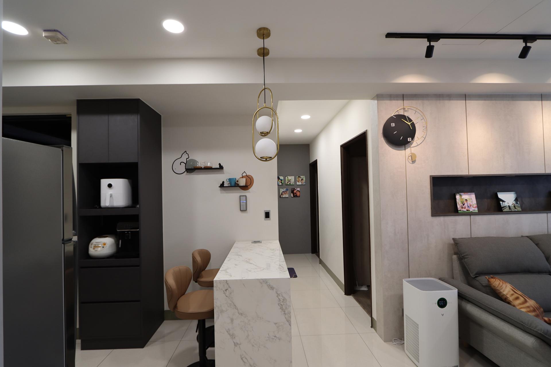 This interior design project is a meticulously crafted residence tailored for a vibrant young couple, with the primary goal of creating a living space that is both comfortable and highly functional. The design not only expands the visual dimensions of the area but also strategically defines mobility flow, ensuring a seamless experience throughout the home. By flexibly utilizing the layout and incorporating simple yet effective building materials, the designer enhances the depth and dimension of the space, beautifully aligning with the dynamic lifestyle of the homeowners.