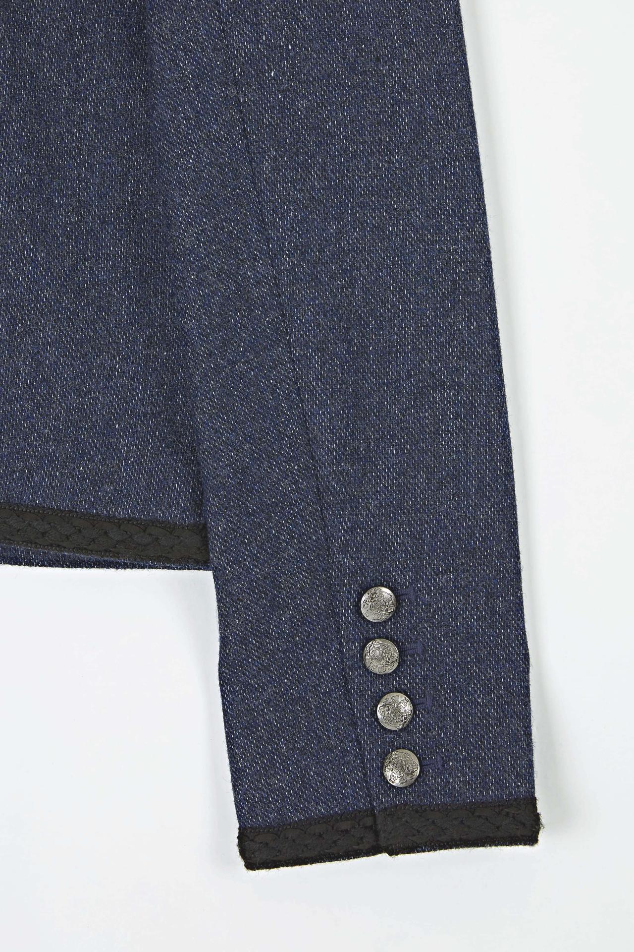 The Essence jacket is a refined reinterpretation of classic outerwear, crafted with a circular design mindset that blends modern minimalism with environmental integrity. Its collarless silhouette and sculptural, structured shoulders offer an elegant contrast to its soft, recycled wool-blend fabric—balancing sharp form with a gentle touch.