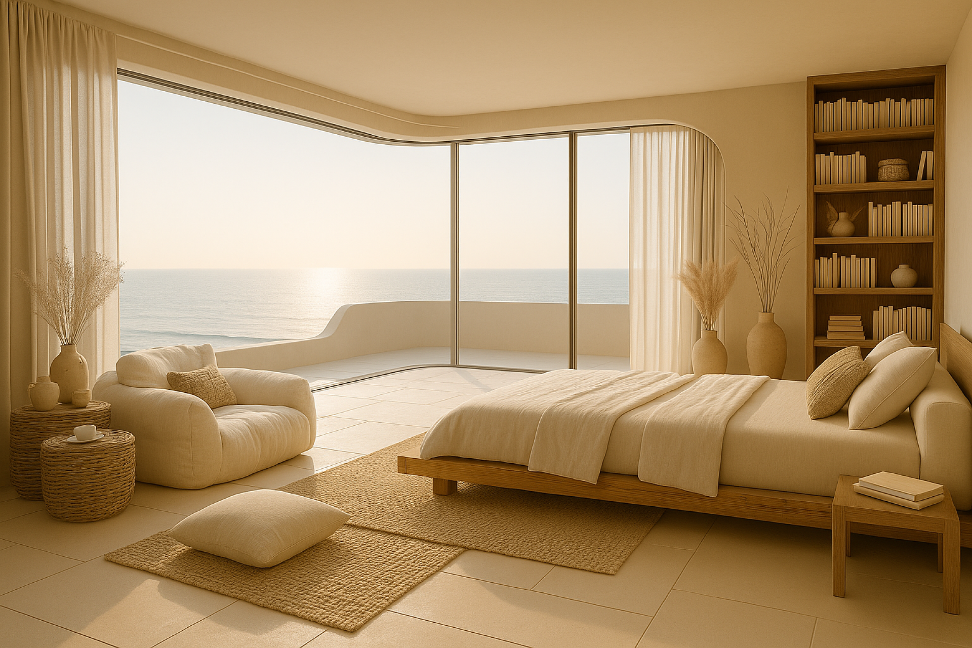 Golden Hour Retreat merges light, form, and lifestyle into a spatial sanctuary—one that honors the beauty of coastal living through gentle transitions, sculpted geometry, and emotional clarity.