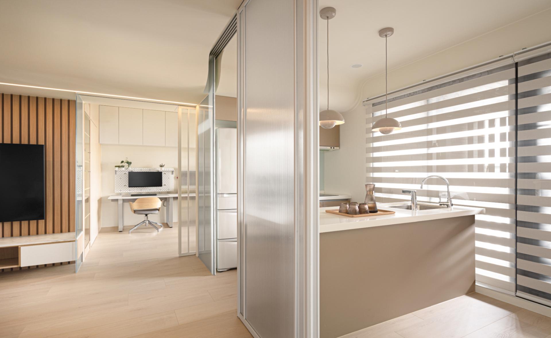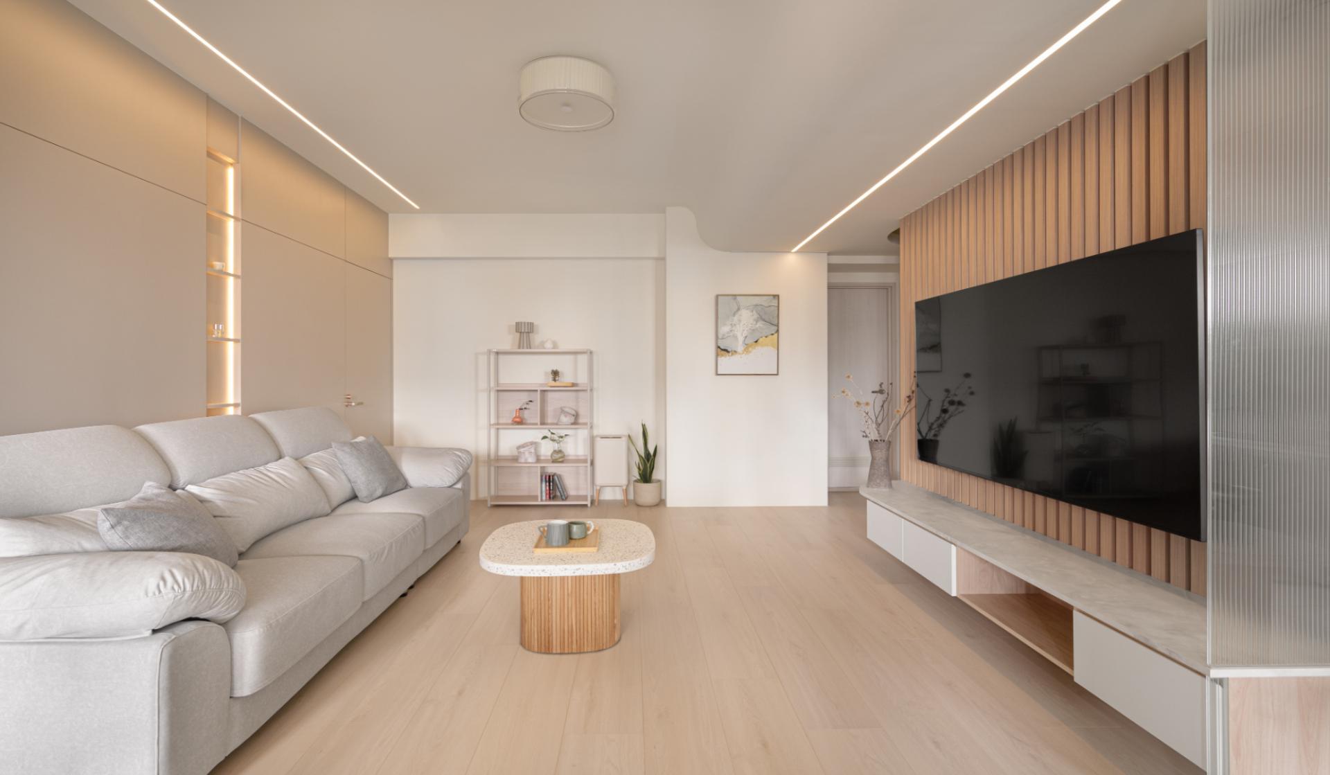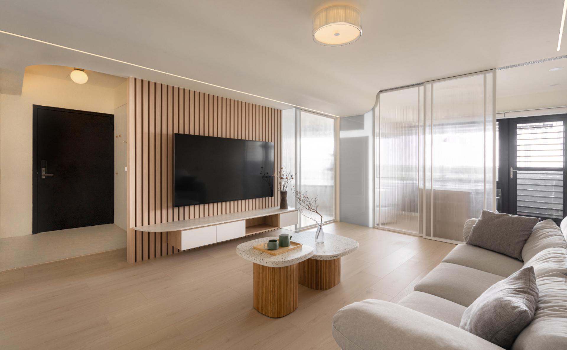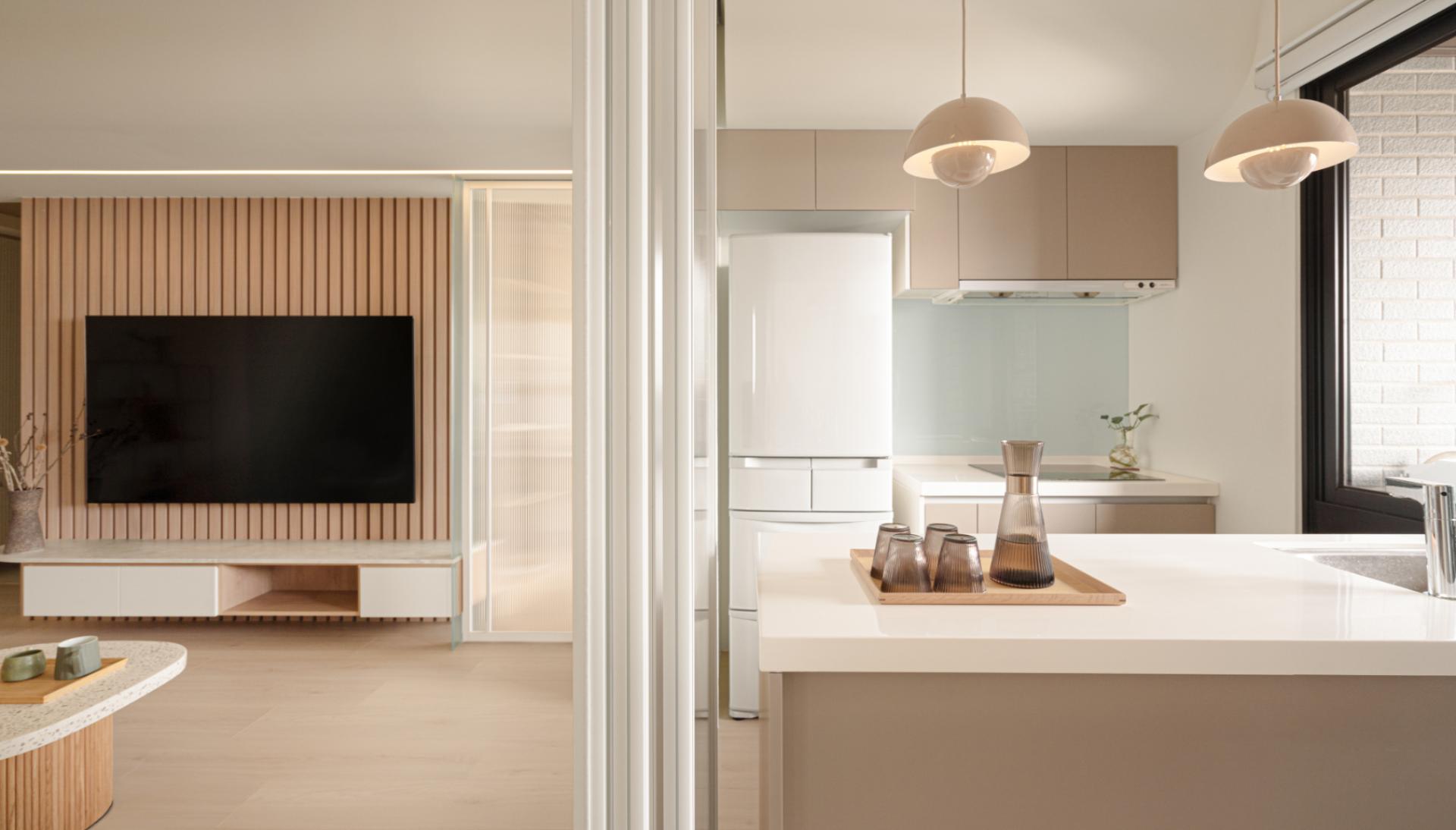 The intervention responds directly to the shifting atmosphere of the skyline, allowing the interior to mirror the natural light and rhythm of the high-altitude horizon through a warm, neutral palette. The vertical linear language of the wooden grilles establishes a rhythmic order that guides the eye, while the strategic placement of crackle-glazed ceramic vessels bearing the creator’s fingerprints dissolves the generic coldness of standardized housing. These handcrafted artifacts, with their unique patina, establish a resonance with the panoramic urban landscape, transforming a residential unit into a grounded sanctuary of quietude. By ritualizing the intersection of materiality and memory, the dwelling filters out urban noise, creating an interface where light and shadow support the emotional growth of a family. This narrative approach goes beyond mere style, offering a physical manifestation of a spiritual journey and the enduring strength required to cultivate a home in the sky.