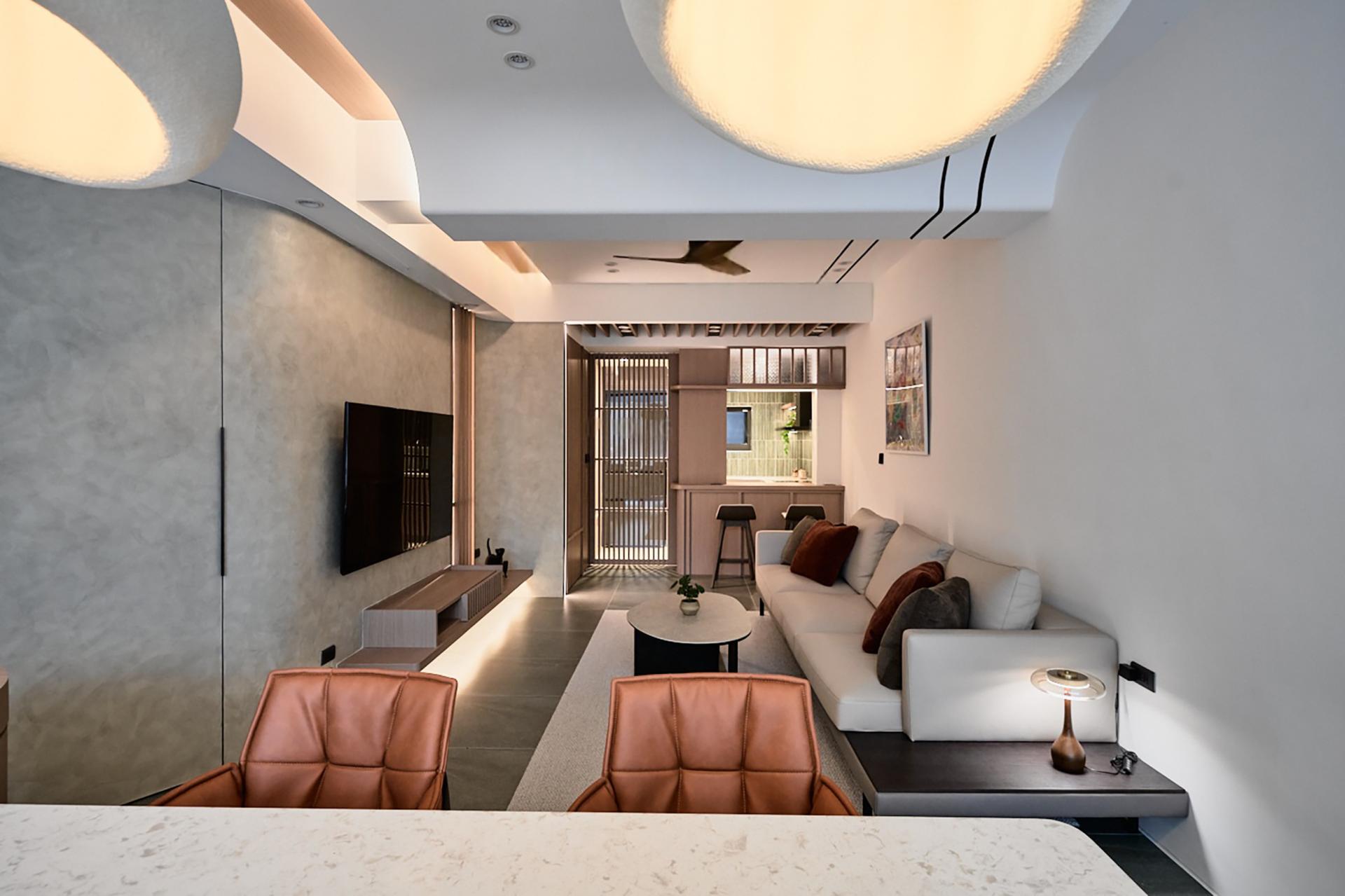 Hidden within the alleys of Tainan, Pong Xu is the rebirth of a forty-year-old residence. The homeowner entrusted the designers to rebuild memory through the quiet expression of Japanese minimalism. Shades of fair-faced concrete and gentle woods form the base, while soft light follows the arc of curved ceilings, easing the low beams and calming the rhythm of space.