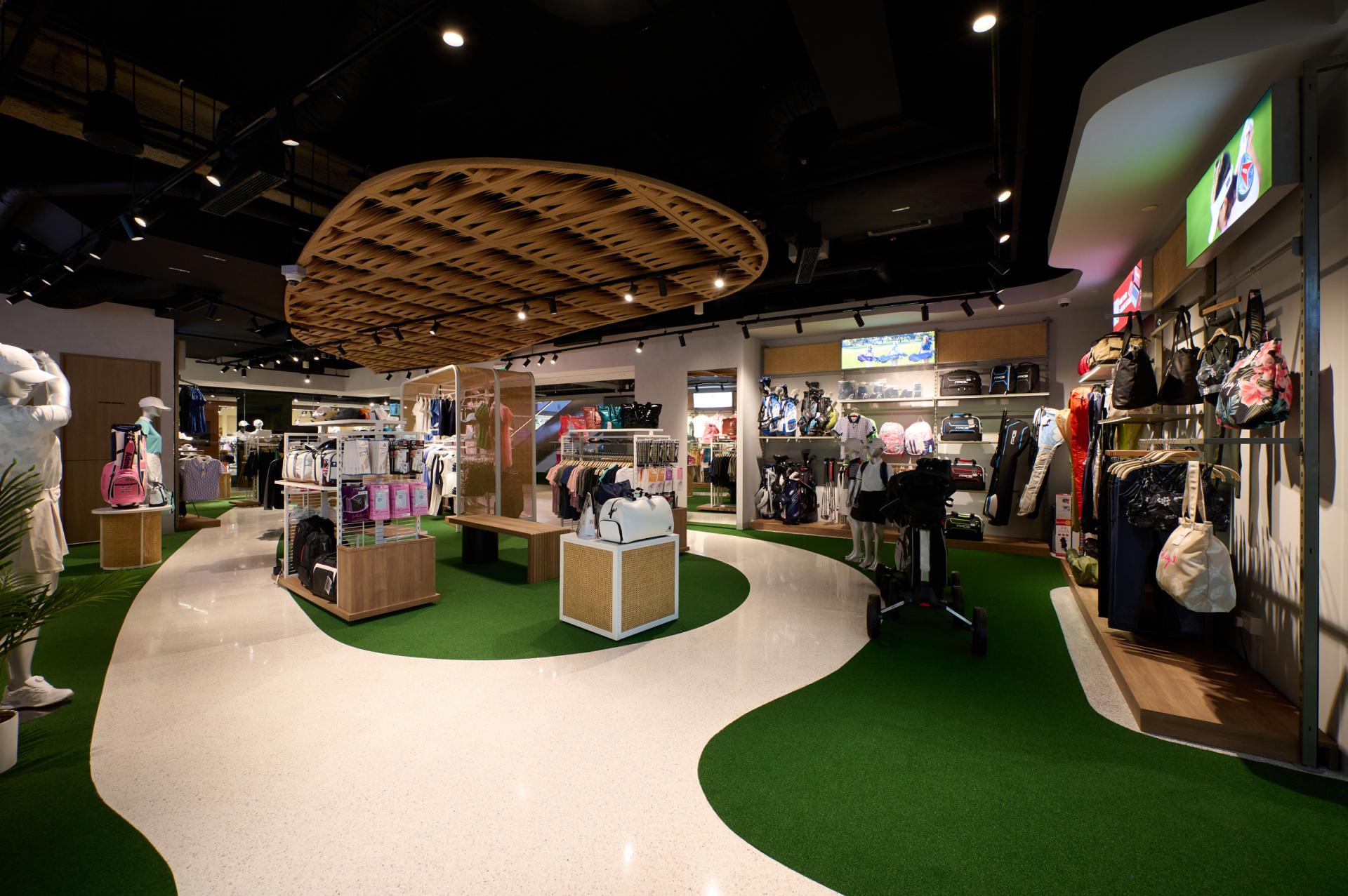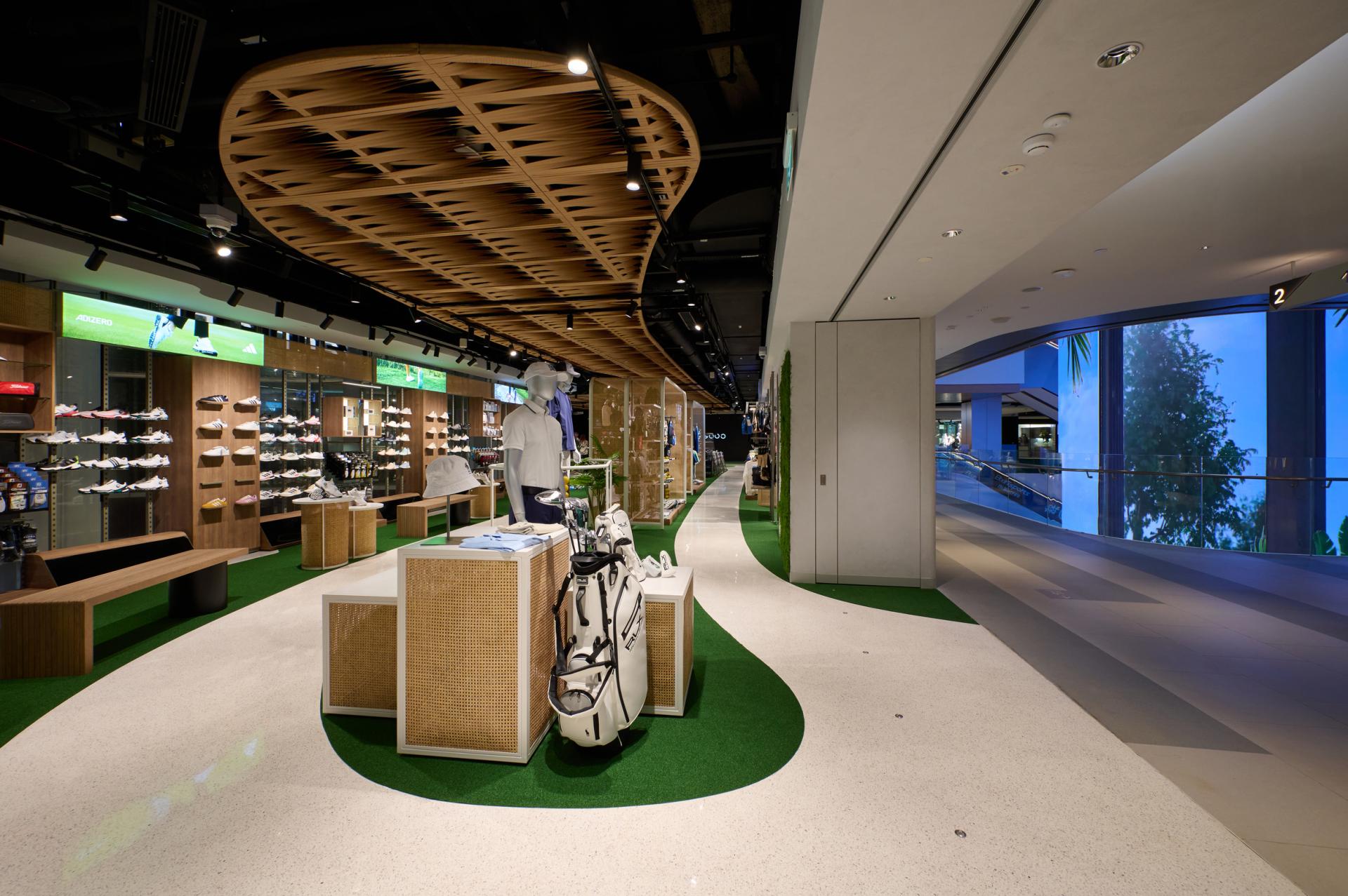 Each spatial transition is designed to evoke the calm rhythm of the game, allowing visitors to move naturally from golf apparel and equipment to personalized wellness services such as foot scanning and club fitting. The fluid circulation mirrors the golfer’s journey across the greens — focused, reflective, and purposeful.