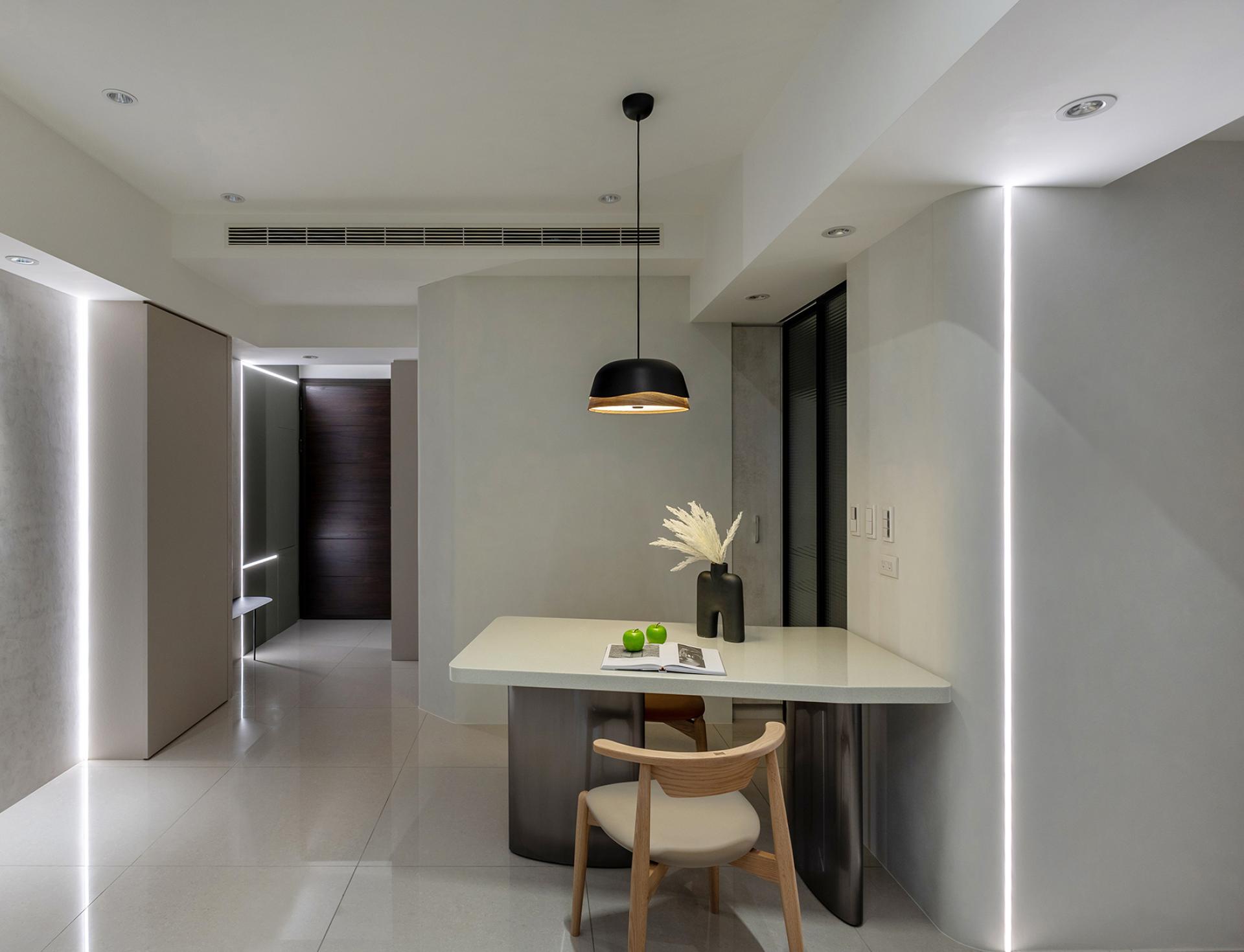 This project thoughtfully delves into the theme of “Light and Shadow in Emptiness,” seamlessly integrating modern wabi-sabi aesthetics into an urban residence. The goal is to cultivate a genuine dialogue between materials and the passage of time. Through the use of refined lines and gracefully curved walls, the design intentionally embraces blank spaces, which serve to eliminate superfluous decoration while simultaneously showcasing the inherent beauty of natural textures found in wood, plaster, engineered stone, and specialty finishes. Moreover, light and shadow are not merely byproducts of the design; they are essential components that shape daily life, weaving a tranquil rhythm that radiates subtle elegance. As one moves through the space, the interplay of illumination and darkness invites introspection and serenity. In addition, the spatial layout has been meticulously crafted to prioritize the comfort of both residents and their pets. Thus, the home transforms into a serene sanctuary, fostering companionship and promoting mindful living.