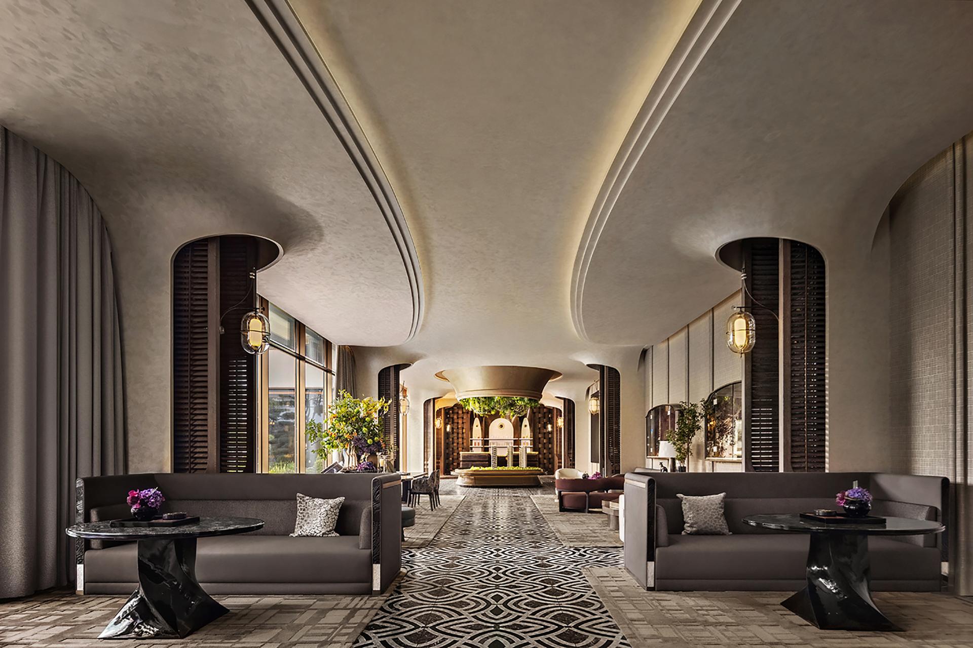 Reinterpreting the charm of the "Lungzhong quadrangle courtyard", the project uses modern techniques to interpret the "Four Waters Return to the Hall" concept. Light and shadow pour over the special stone materials, outlining the dynamic line of "crossing", which not only implies the accumulation of wealth and blessings, but also extends the spatial depth with a grand scale.