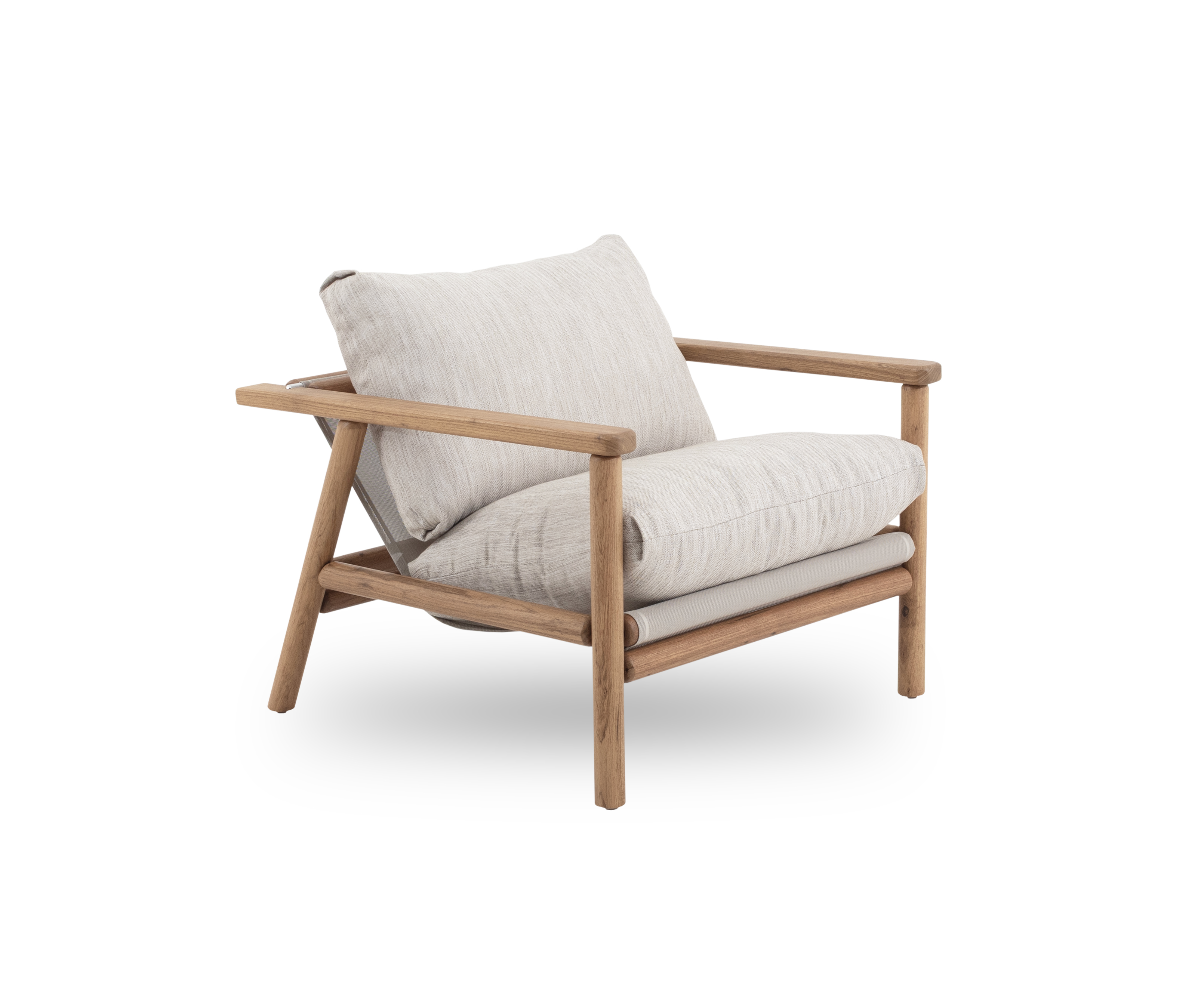 An exposed wooden structure supports generous cushions in a design that celebrates the essentials: comfort, touch, and the time to simply be.
