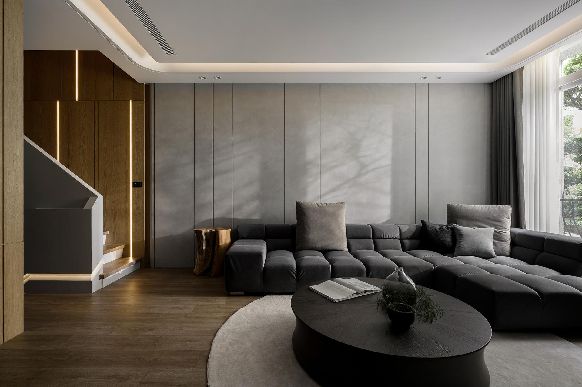 The home is fully equipped with intelligent systems, allowing lighting and appliances to be controlled remotely. A concealed distribution panel skillfully presents a clutter-free perception. The ceilings feature soft, indirect lighting, casting a warm glow that gently outlines each area, striking a subtle balance between practicality and aesthetics. These small, deliberate touches reflect a long-term perspective on living, where light moves with time, and the warmth of home is felt in every shift of shadow.