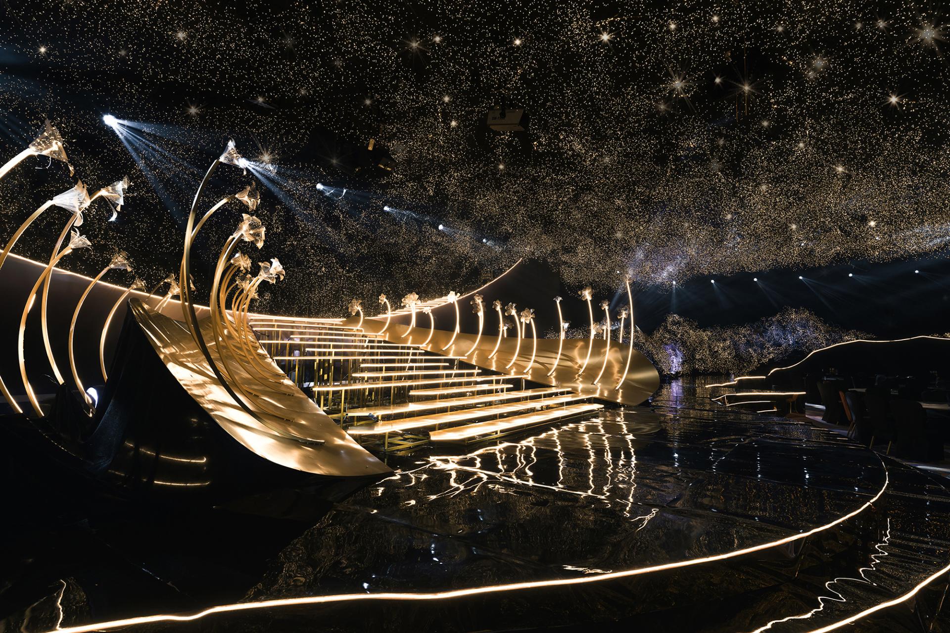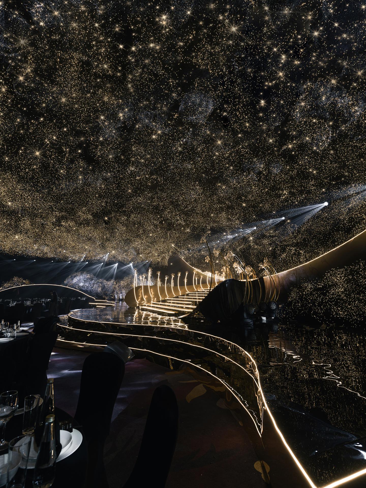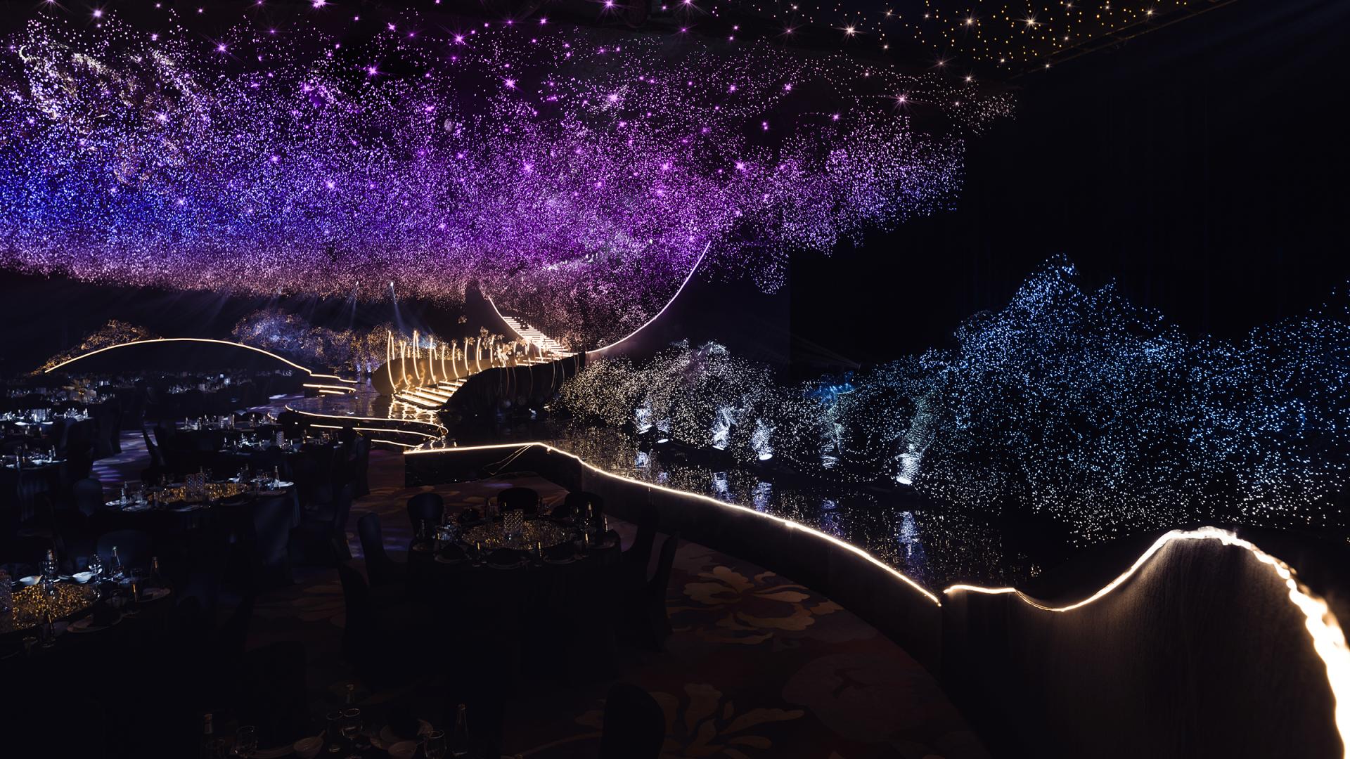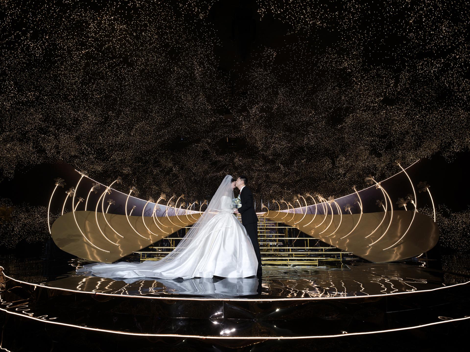 Born from a decade-long promise, this wedding project transforms the couple’s shared journey into an immersive spatial narrative. Due to the bride’s busy entrepreneurial career, their ceremony had been postponed for many years, and this long-awaited celebration became both a tribute to time and a ritual filled with emotional depth. The design is inspired by the groom’s admiration for the bride’s bright, lively eyes, echoing the poetic idea that countless ordinary moments eventually gather into a magnificent, star-filled sky. This imagery runs throughout the entire space, shaping an experience that is both visually striking and emotionally resonant.
