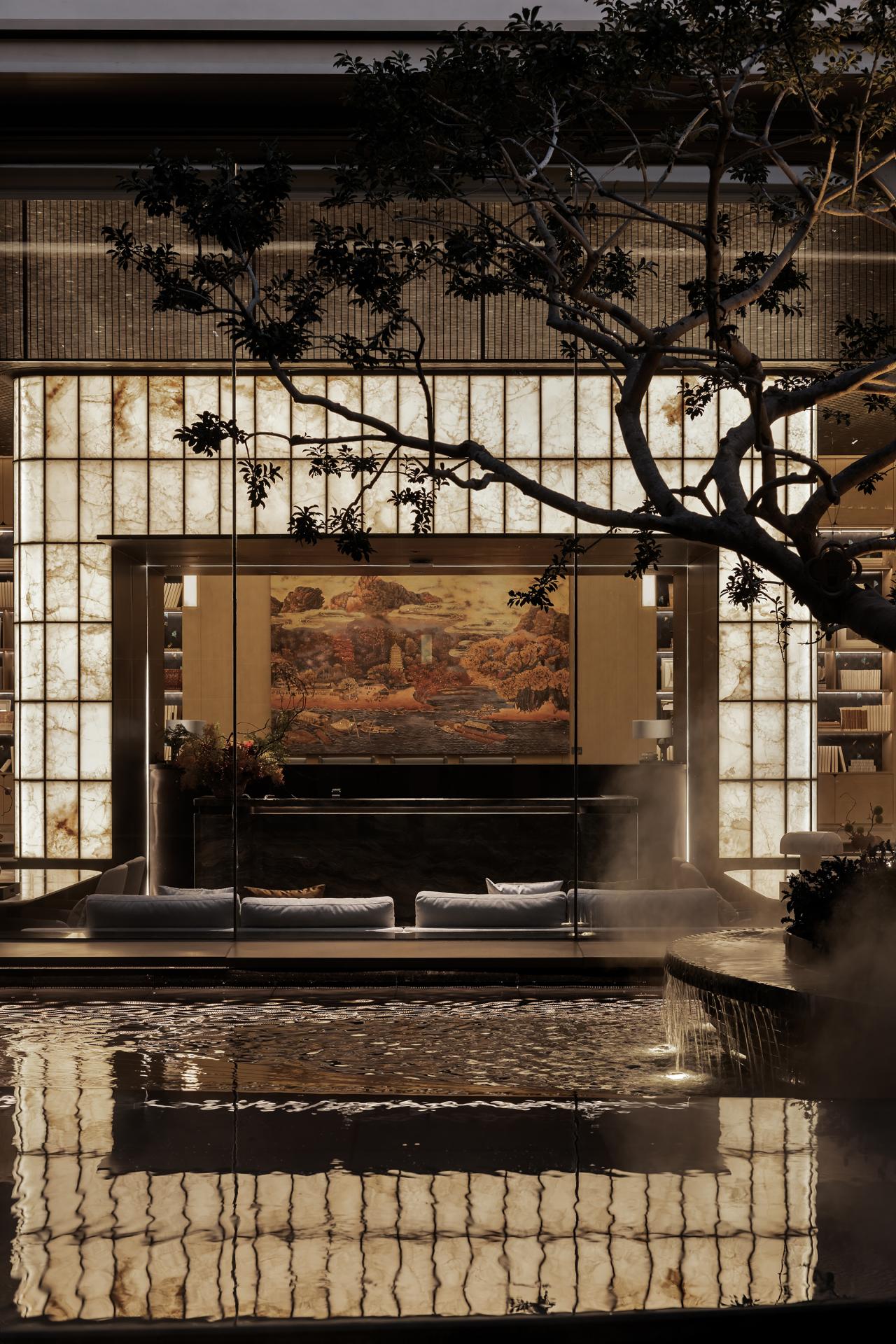 The design, inspired by “A Luminous Canal, a Flowing Realm of Prosperity,” emphasizes semi-translucent stone volumes as its primary spatial element. A carefully selected palette of low-saturation materials, paired with a darkened ceiling, establishes a sophisticated yet layered atmosphere. Light interacts with the material surfaces, creating shimmering effects reminiscent of rippling water. This interplay of form and illumination not only enhances the spatial experience but also captures the subtle, profound aesthetic sensibility intrinsic to Eastern culture, fostering a serene and reflective environment.