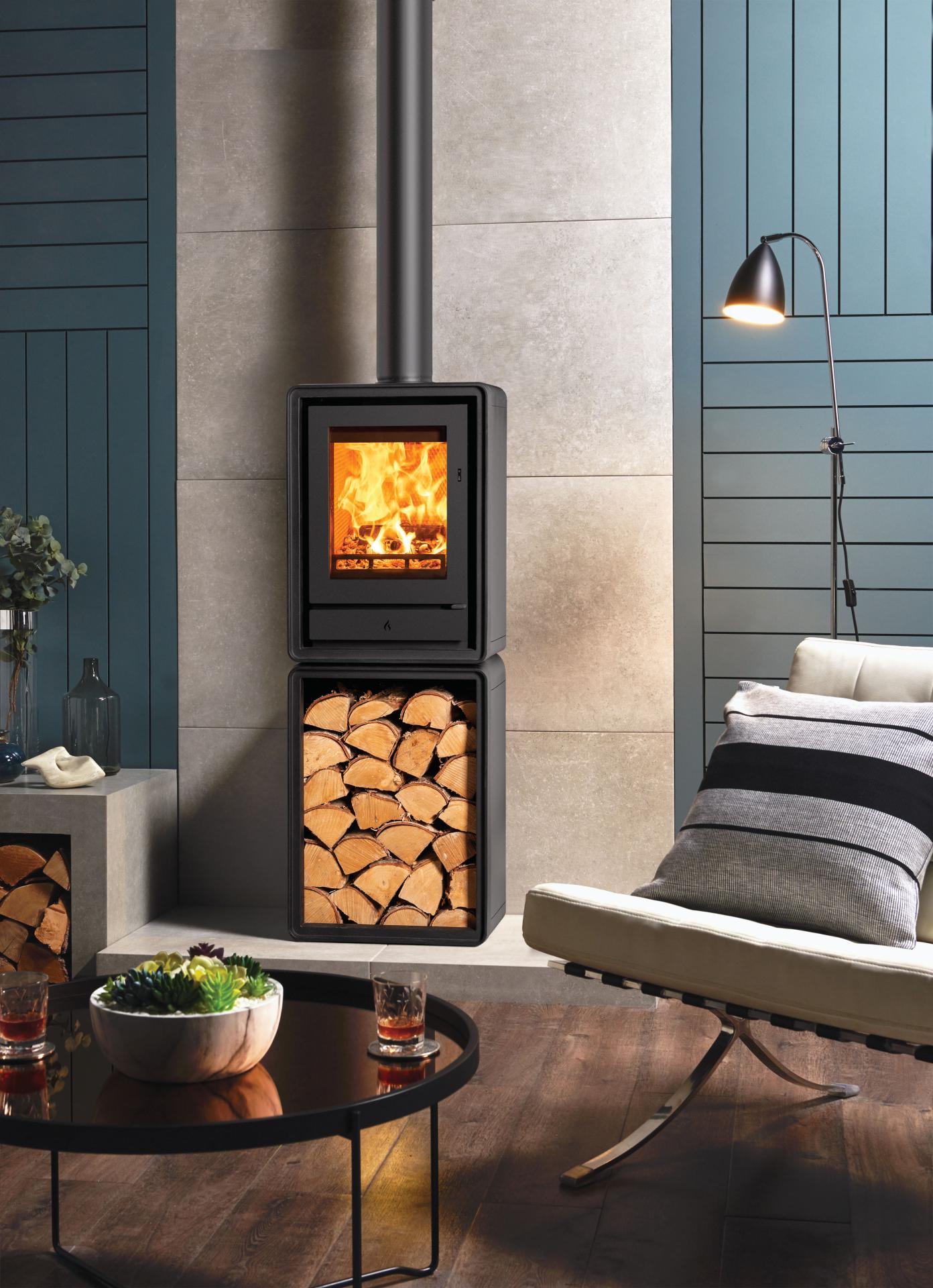 In terms of aesthetics, the range offers numerous customisation options to blend harmoniously into any interior. For enhanced visual impact, each model can be installed on an optional log box. This elegant storage base raises the fireplace, can be used for practical log storage, and extends the contemporary lines that are emblematic of the Riva2 design.