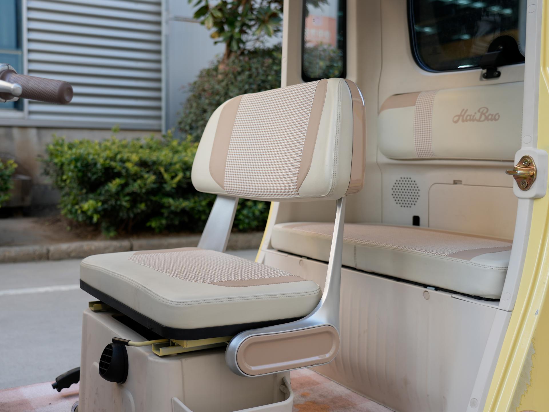 The vehicle is also highly intelligent. It is equipped with multiple cutting-edge features including a rearview camera, hill descent control, a heating system, a windshield washer nozzle, and remote control via a dedicated mobile app, making driving safer and more convenient. An ergonomic adjustable seat, paired with front-to-rear sliding rails, accommodates users of varying heights, delivering a comfortable, fatigue-free experience even during extended use.