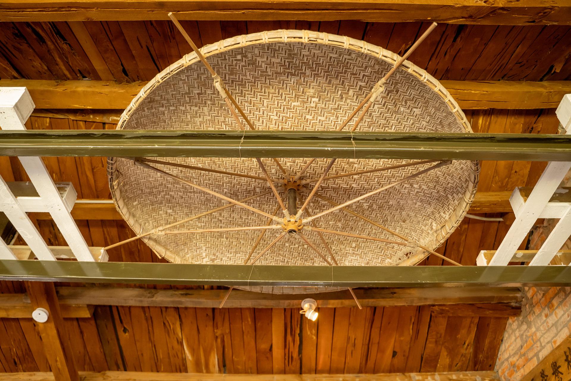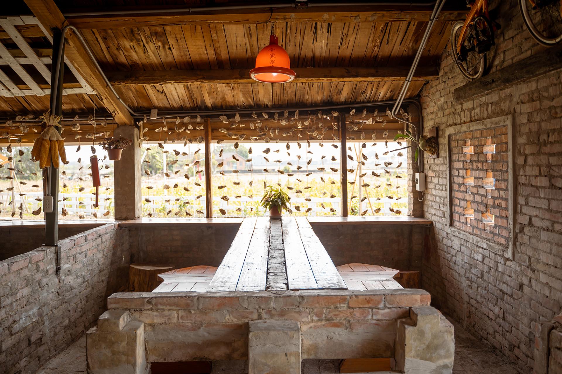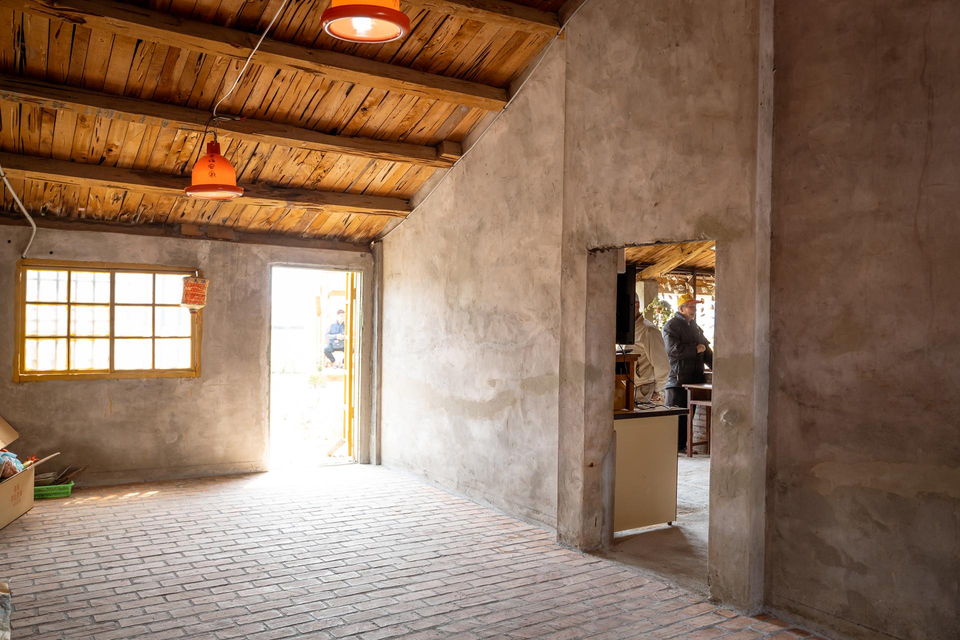 The former pig house was transformed into a “Green Canteen,” functioning as a shared kitchen and dining space where residents can cook and eat together. Through food, the space helps bring people closer and encourages everyday interaction. Two large stoves were installed inside. Water buckets once used for poultry farming were repurposed as lamp shades, while old windows removed during dismantling were reused as drying racks, putting principles of material reuse and environmental construction into practice.