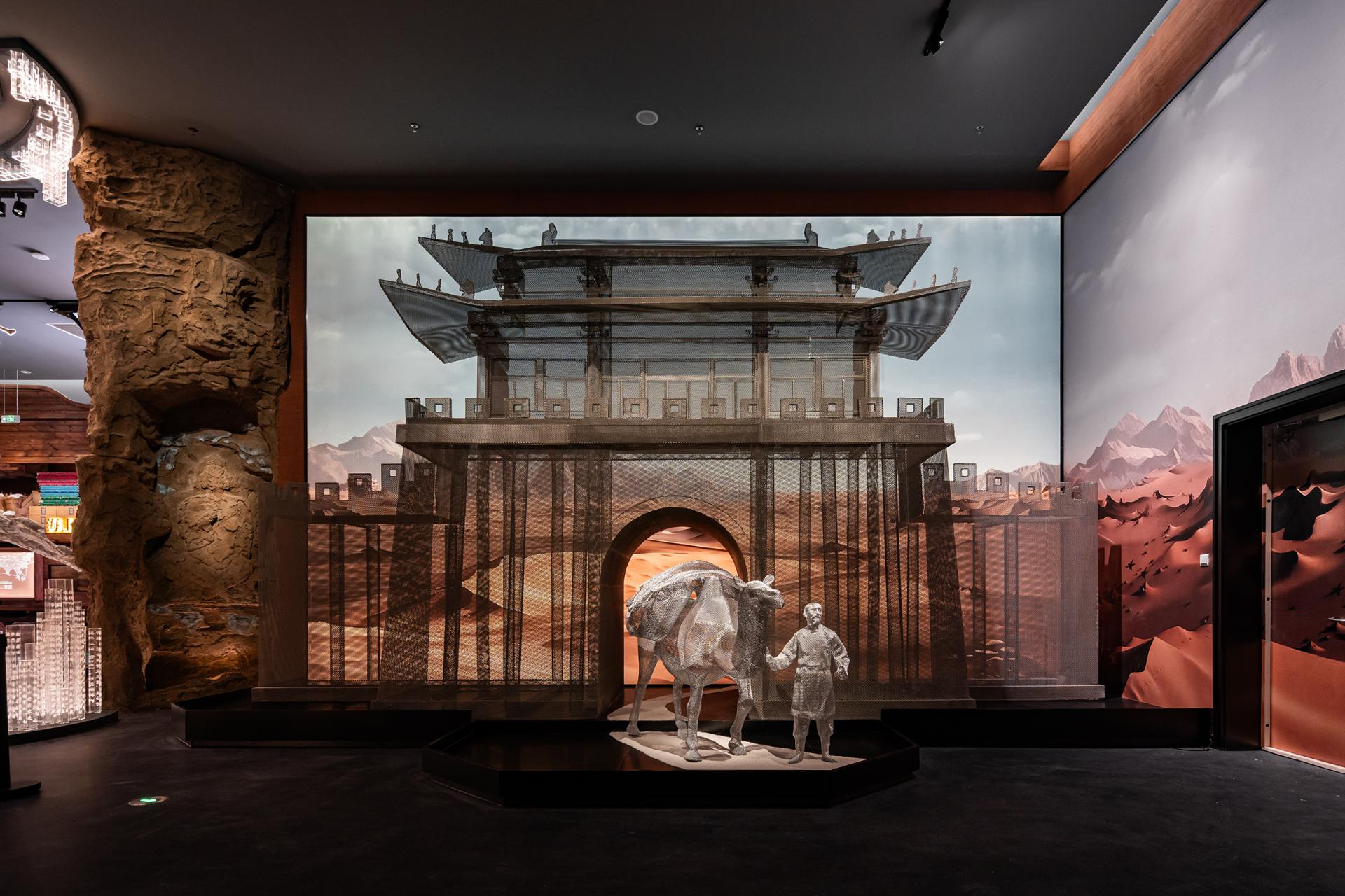 Aesthetic expressions are derived from Han Dynasty architectural styles and Western Regions cultural symbols. Abstract representations of city walls and beacon towers, along with composite stone and metal structures, convey a strong historical presence. The design balances Han-style elements with modern exhibition language, addressing the unique climate and geography of Xinjiang through durable materials such as composite glazed materials and local stone that are sand- and temperature-resistant.
