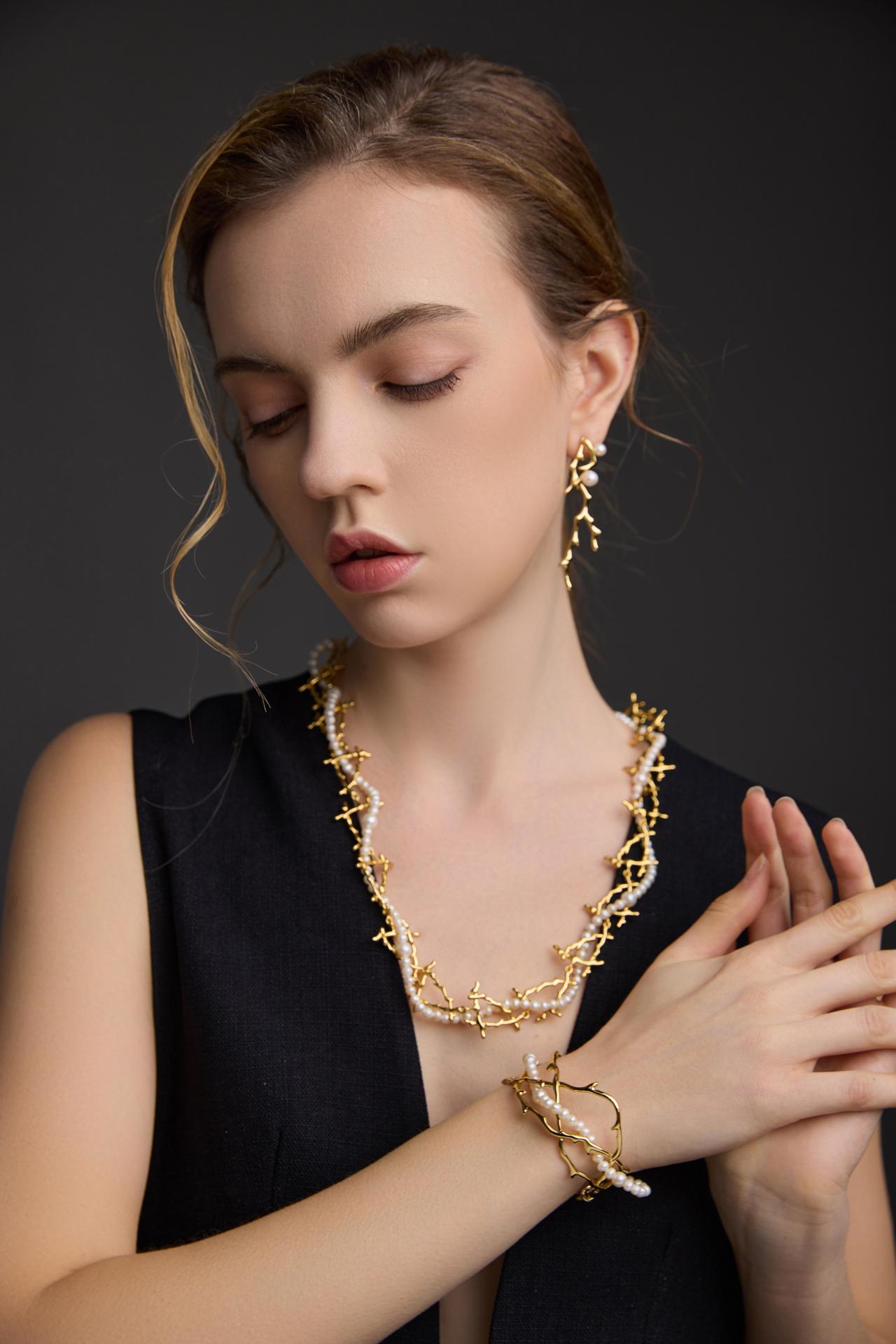 This necklace features a detachable structure to transcend the rigid conventions of how traditional jewelry is worn and deliver versatile, convertible styling. It can be taken apart into two standalone pieces: a pearl necklace and a thorn necklace. The thorn segment even transforms further into a bracelet or a choker via a movable clasp, unlocking a wealth of styling possibilities in one single piece. This design expands the range of wearing occasions, easily transitioning from casual daily looks to formal events, while speaking volumes for self-expression among modern women navigating diverse life roles.