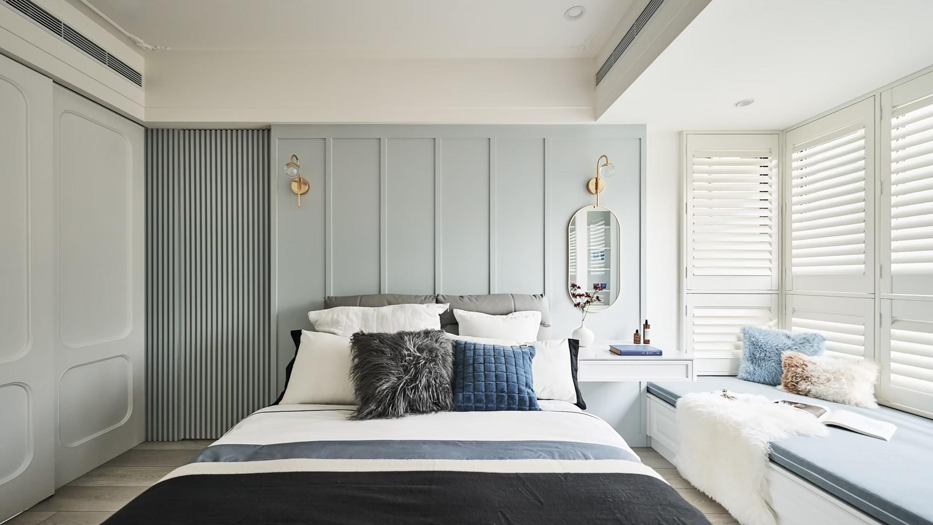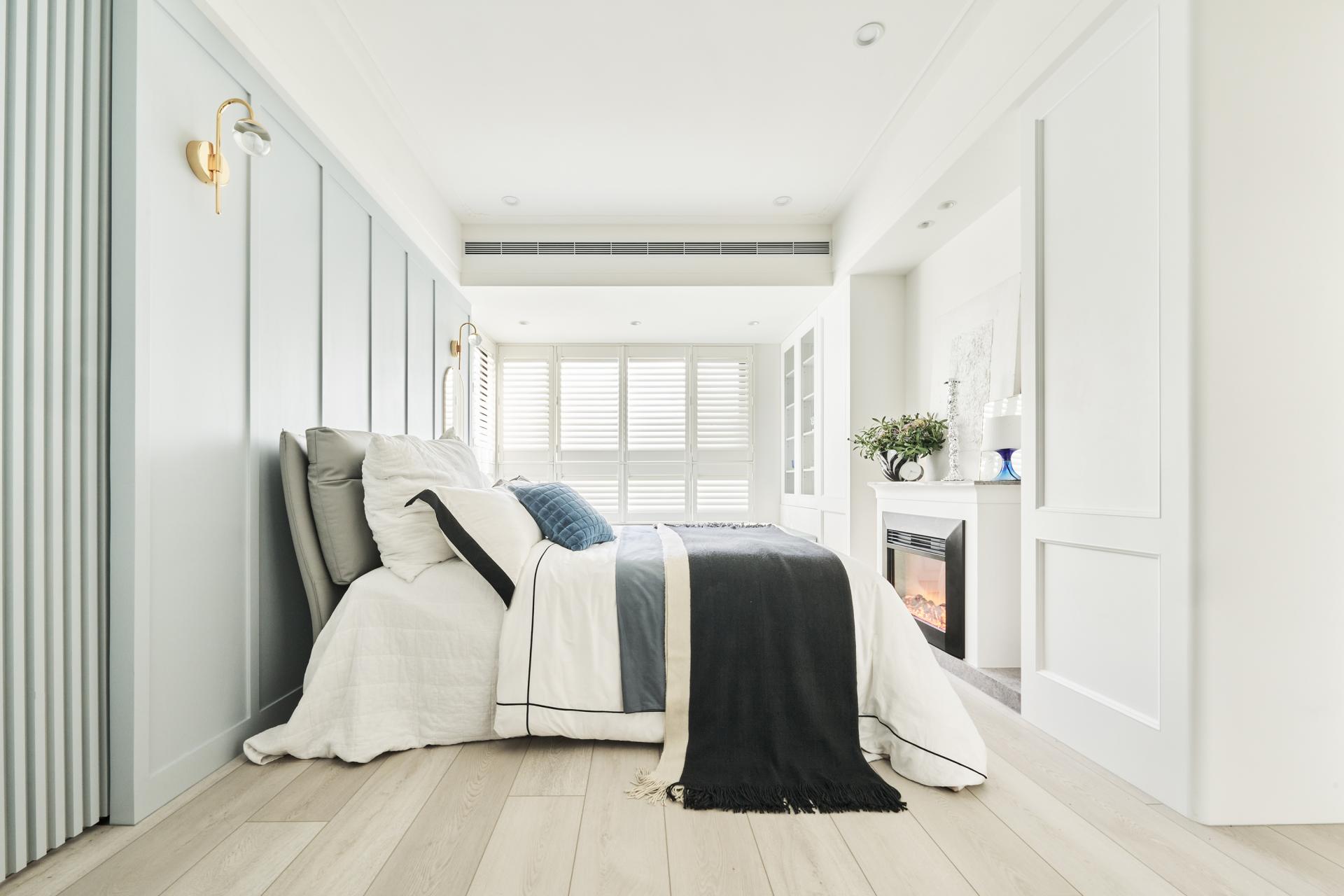 Because the homeowner lives alone and is of advanced age, safety and maintenance are integral to the design. Pave the floor with large-format, slip-resistant matte tiles to eliminate grout lines, ensure a cleaner visual, and facilitate clean up. Subtly overplay classical wall moldings. Replaced raised ornamental profiles with recessed detailing to minimize dust accumulation while preserving a refined, elegant appearance. Rounded transitions and simplified linear elements are introduced along flat ceilings and wall junctions, blending American stylistic charm with practical considerations for long-term care and comfort.