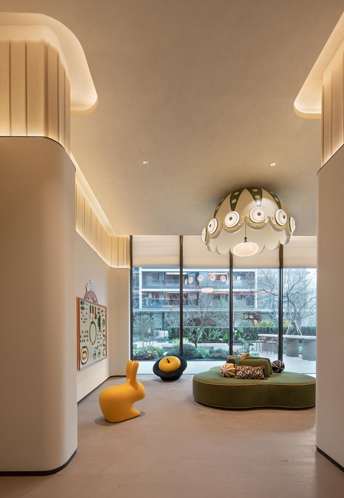 In the children’s area, playful and tactile design elements—like spherical ottomans and curved stools—embrace both physical needs and imagination. Inspired by “Alice in Wonderland,” the play zone features whimsical installations that guide children from reality into a fantastical world, creating distinct memory anchors that fuel creativity.