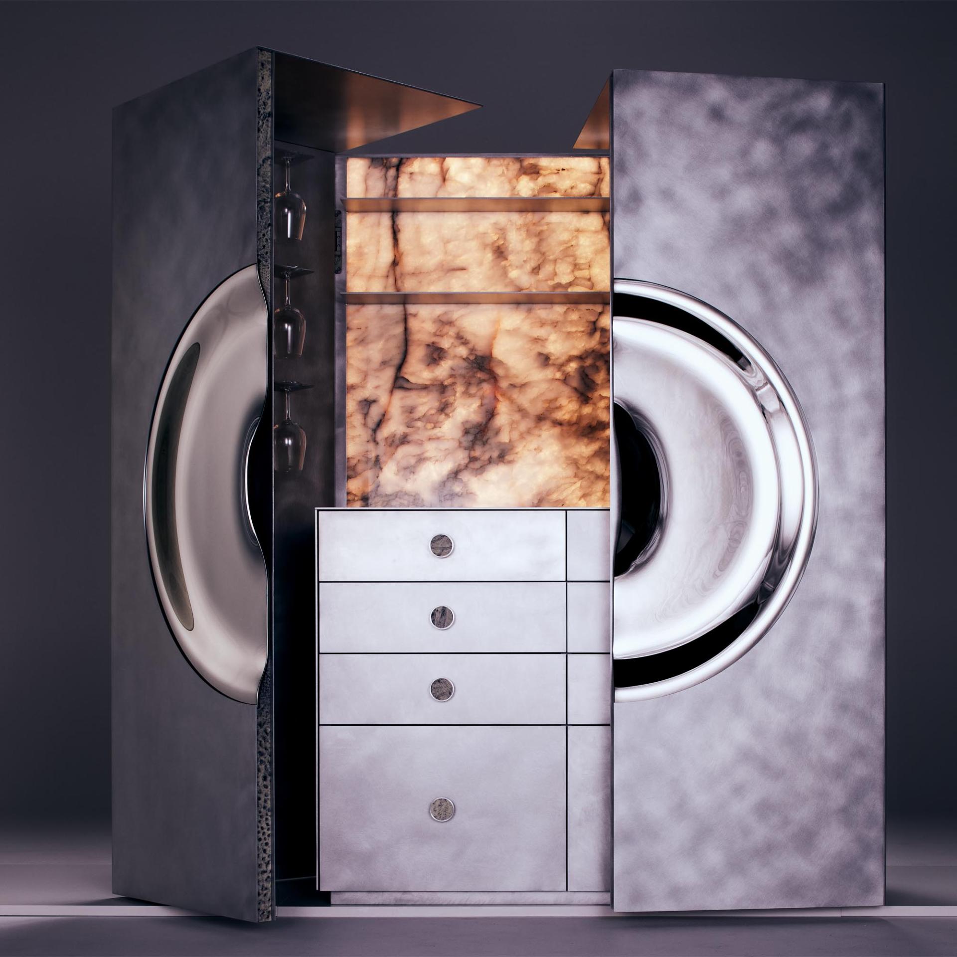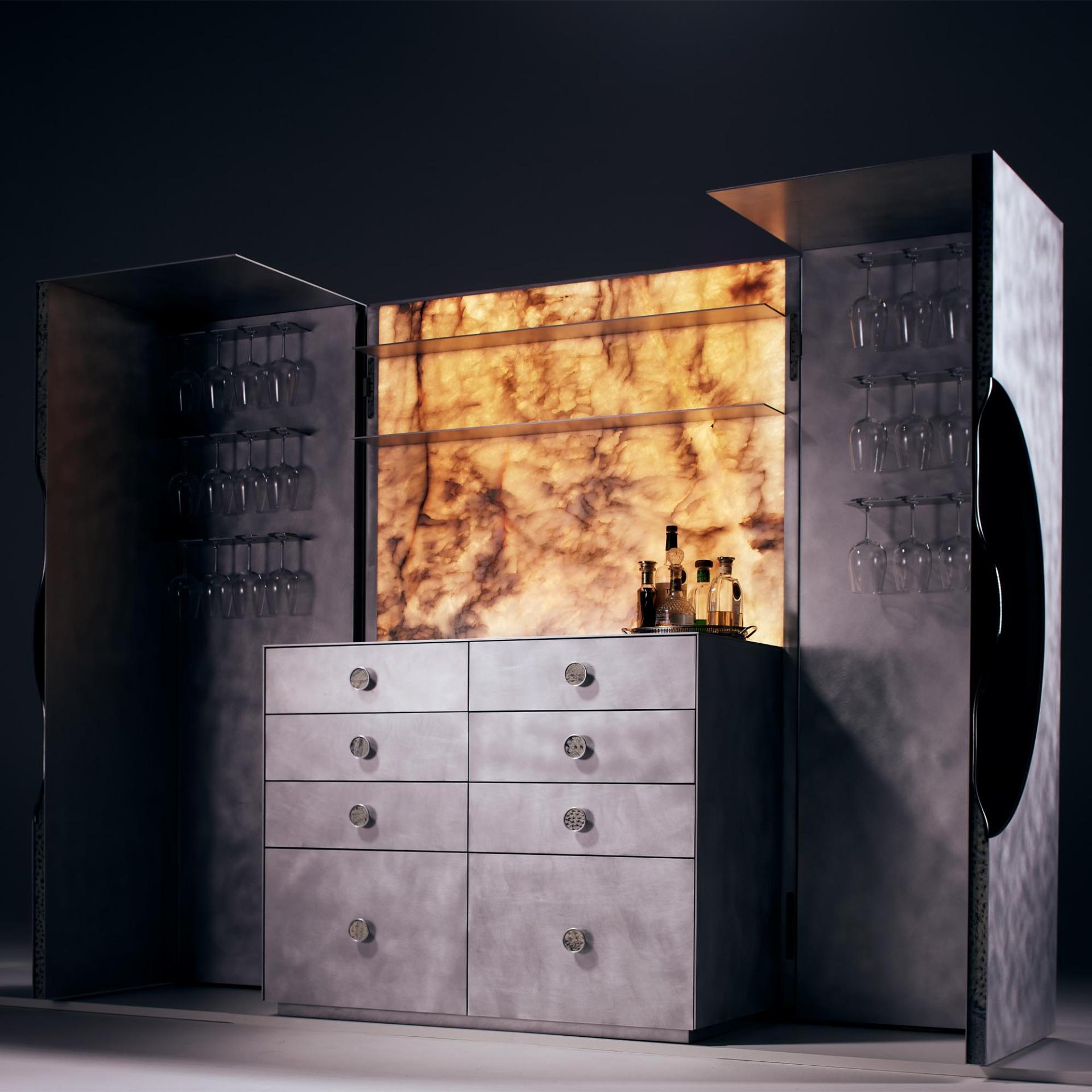More than a functional object, Orion is an immersive experience — a statement of contemporary European craftsmanship and the power of collaboration. It redefines the bar cabinet as a work of art, designed not only to store and serve, but to inspire atmosphere, conversation, and celebration.