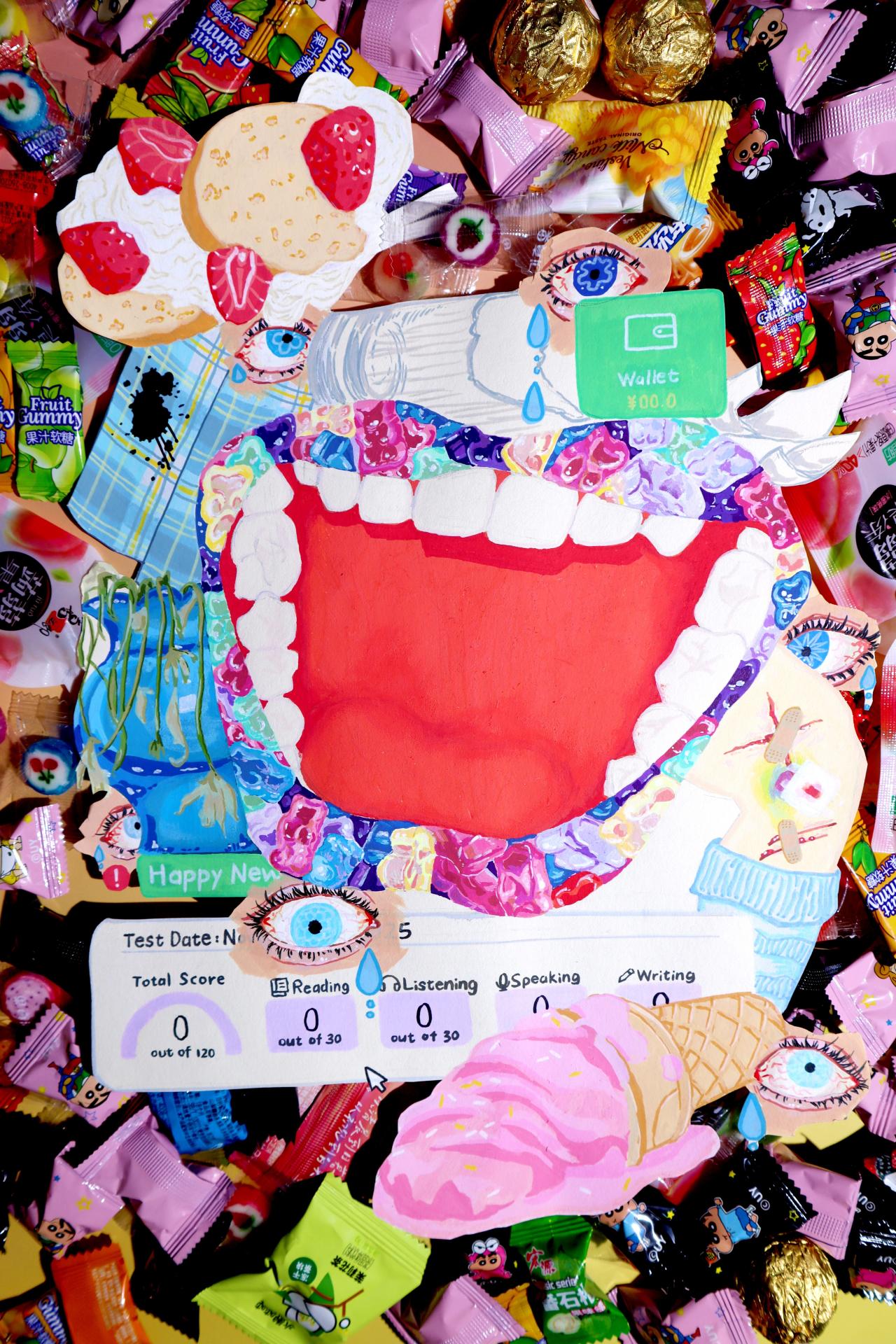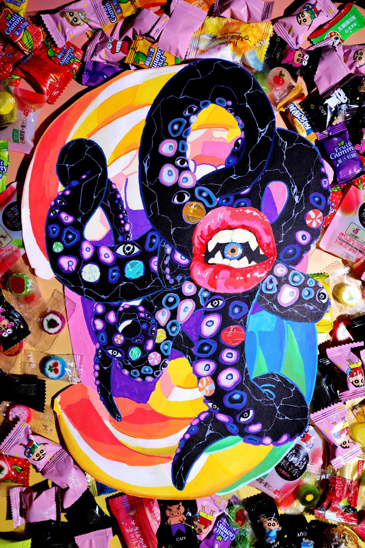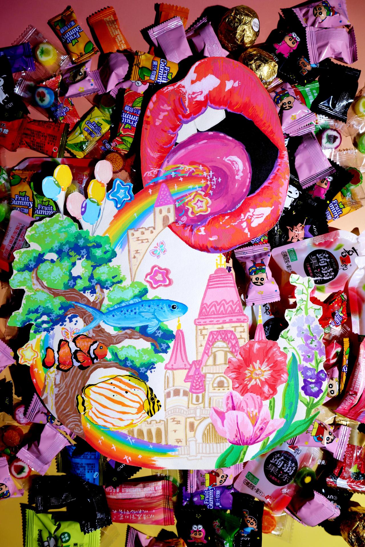 "Candy and Emotions" is a series of four fine-art illustrations. Using filled candy, gummy candy, hard candy, and chocolate as metaphors, each work embodies a distinct emotional state: joy, sorrow, anger, and boredom. Through the textures, structures, and transformations of sweets, the series translates abstract feelings into tangible visual experiences, inviting viewers to recognize and respond to their own shifting emotions through a sweet, sensory lens.