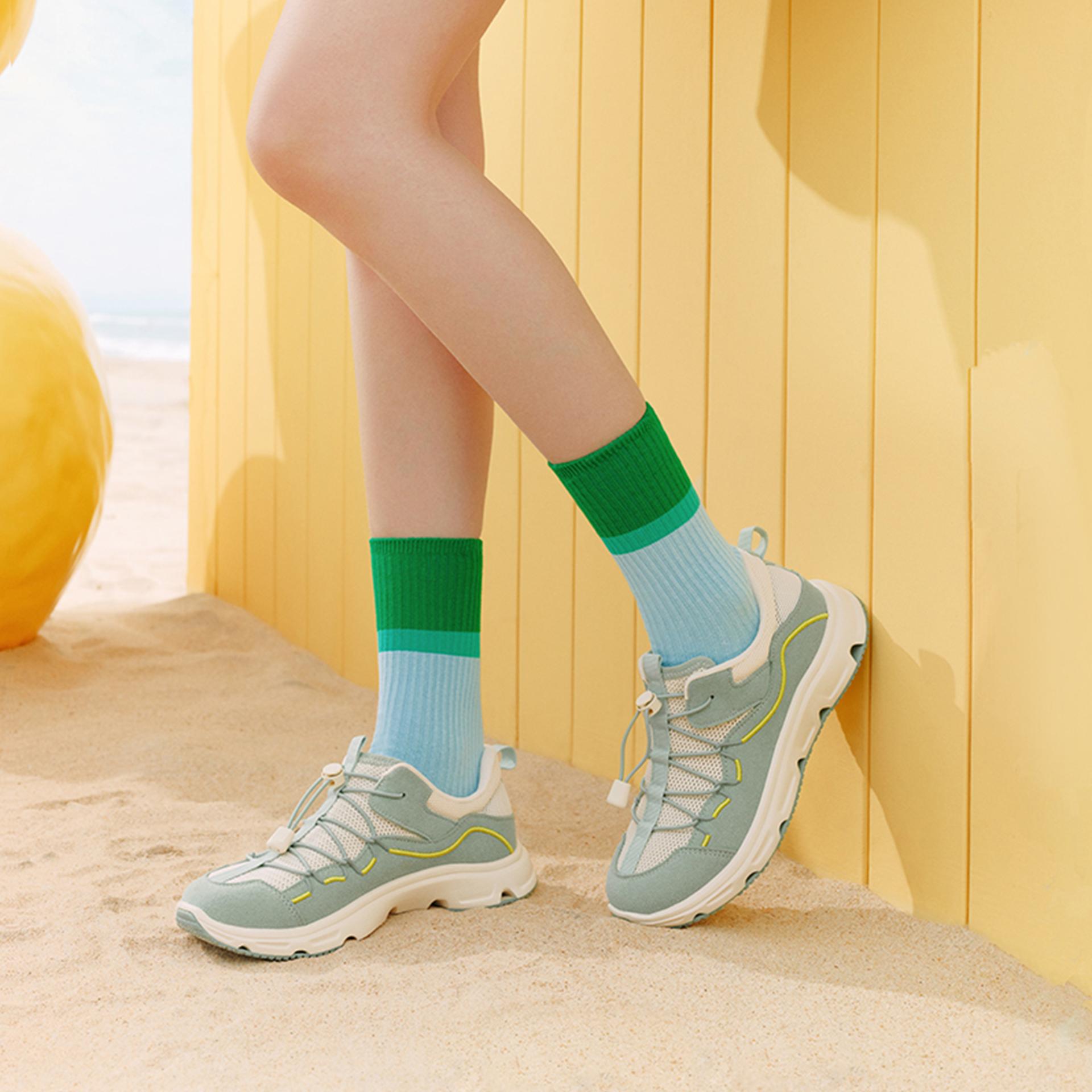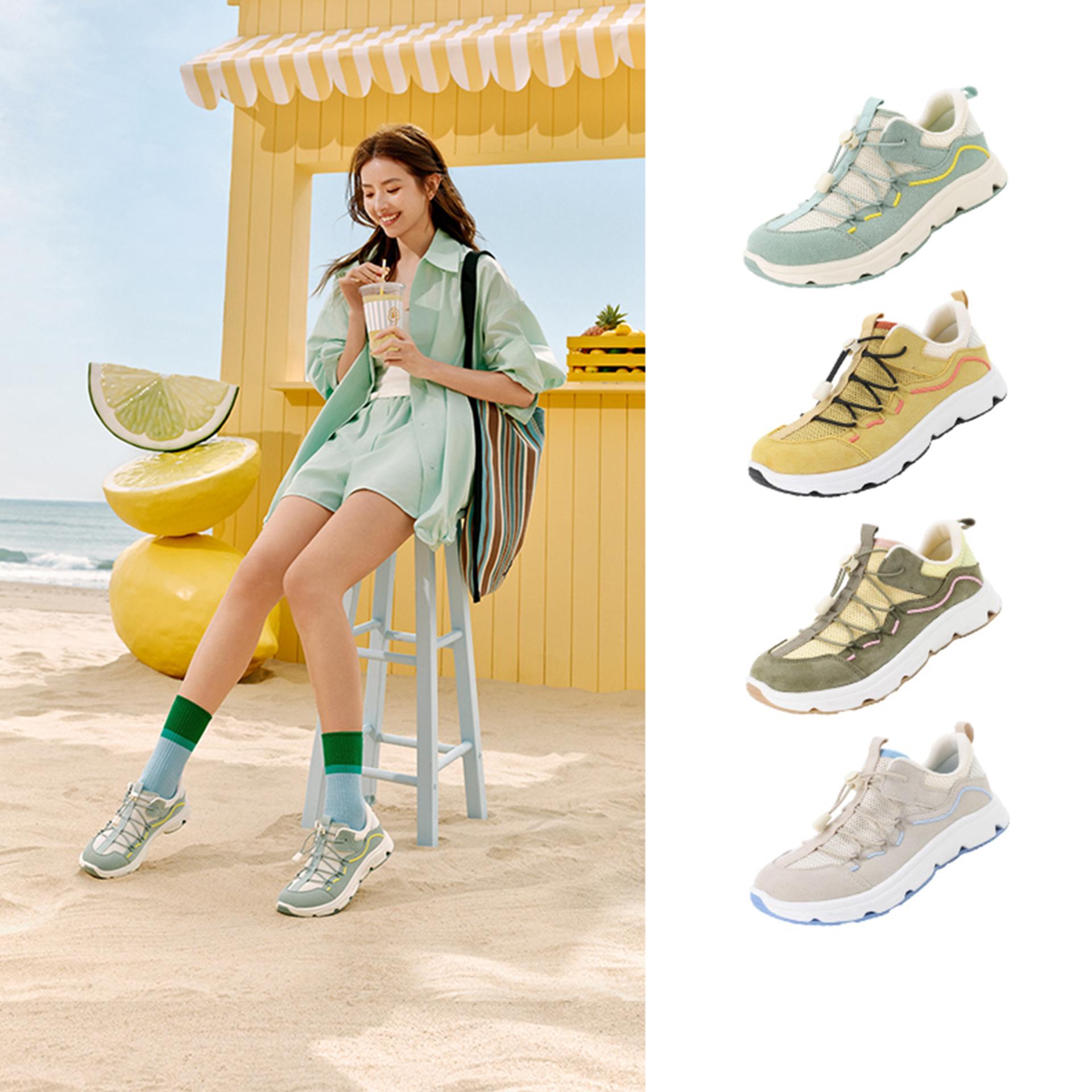 In terms of aesthetic design, the product boldly rejects the stereotype that “outdoor shoes must be rugged,” adopting a minimalist yet understated visual language. Its soft, fresh palette (e.g., mint green + beige, accented by vibrant yellow lines) and technical details ensure the look is both versatile and distinctive. Moreover, the proportion of each part—from lace holes to decorative lines—adheres to the Golden Ratio. This imbues the shoe with ultimate visual harmony, making it seamlessly adapt to diverse scenarios including daily commutes and weekend outdoor activities.