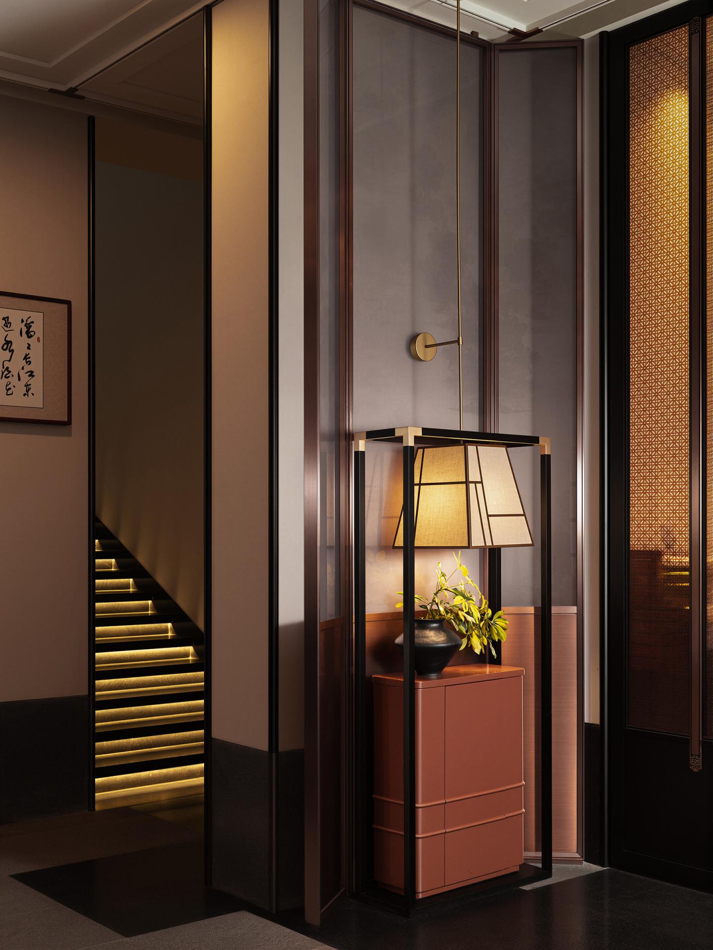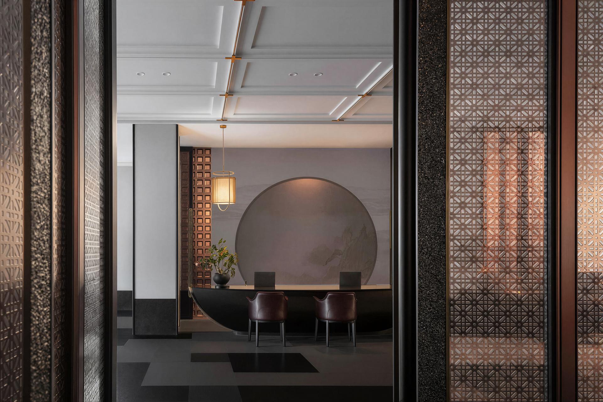 Guided by the philosophy of “Superimposition of Time and Space,” the project integrates natural and cultural elements into a modern framework. Bamboo-shaped metal partitions, bamboo-weave light installations, and textured wall finishes create a restrained and tranquil atmosphere. Lighting and artworks inspired by traditional wine vessels evoke a sense of historical depth, while dragon-pattern embroidery and scale-like detailing introduce subtle dynamism. Ceiling light strips echo the flowing river, and stone textures suggest water-worn surfaces, allowing traditional references to dissolve into contemporary expression.