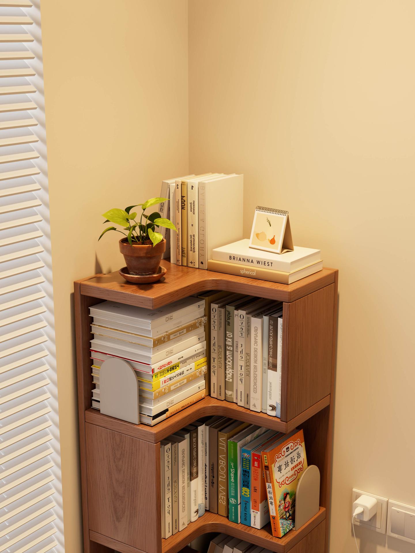 Designed for households living in small apartments, this Solid Wood Corner Bookshelf features a 90-degree L-shaped structure that fits seamlessly into various home corners. With multiple sizes available, it can adapt to different residential layouts, allowing unused corners to be converted into organized and tidy storage areas. Unlike many similar products on the market that use composite boards, this bookshelf insists on using high-quality solid wood to eliminate emissions of harmful substances such as formaldehyde and benzene at the source, ensuring a healthier living environment. The high-density solid wood also provides excellent load-bearing capacity and structural stability, ensuring long-term durability without deformation or cracking.