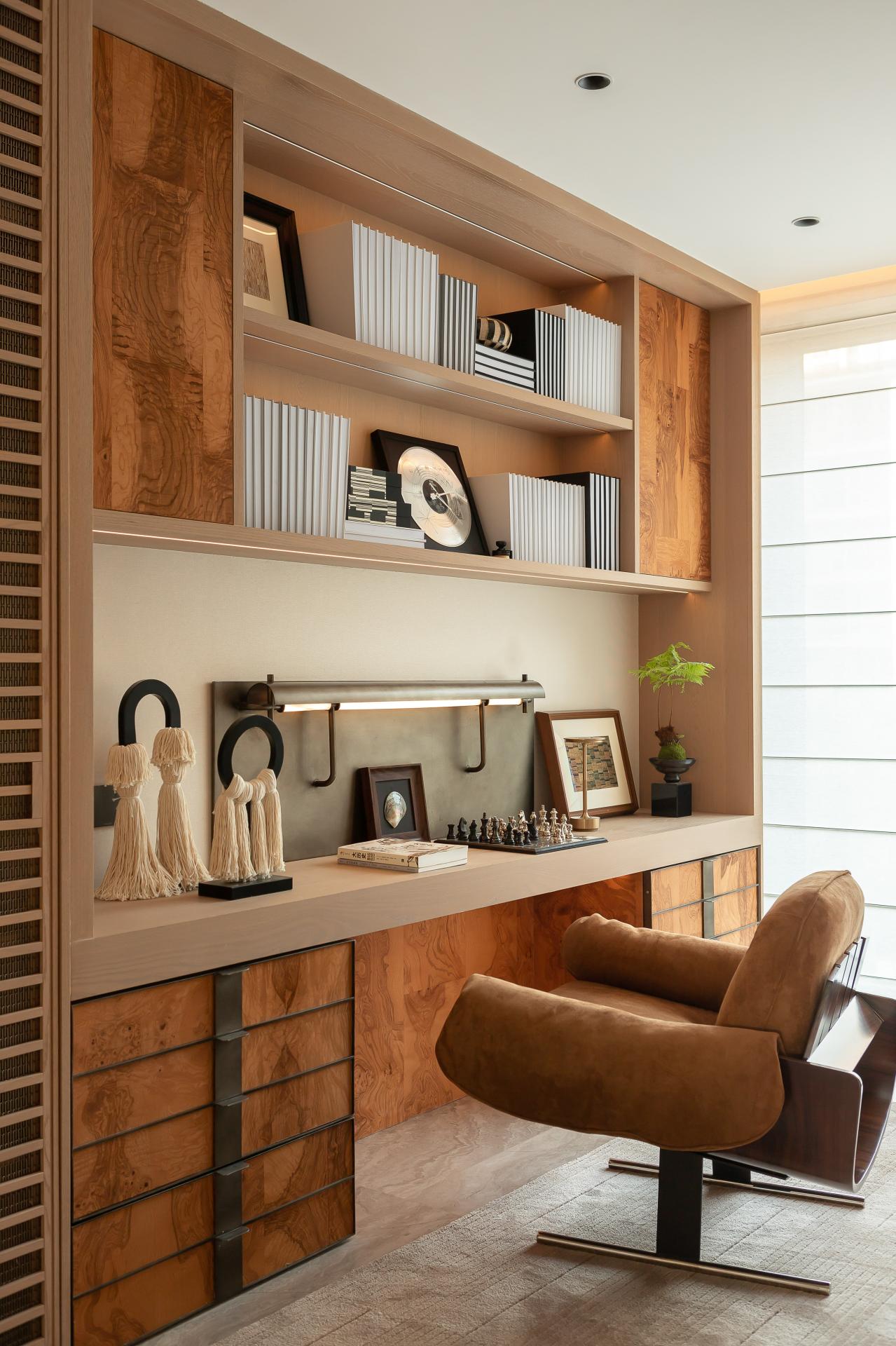 From the extended lines of the "Wave Texture" at the entrance, to the gentle close of "Afterglow" in the dining area; from the patina of the vintage Jorge Zalszupin single sofa in the study, to the master bedroom where light learns to linger—every corner flows quietly within the rhythm of daily life. The daughter's room is delicately accented with pearls, while the son's room presents a rational order for growth. This dwelling both carries the romantic essence of the ocean and harbors the emotional memory of Ouyue culture, allowing life to find its harbor of the heart in the depths of the tide.