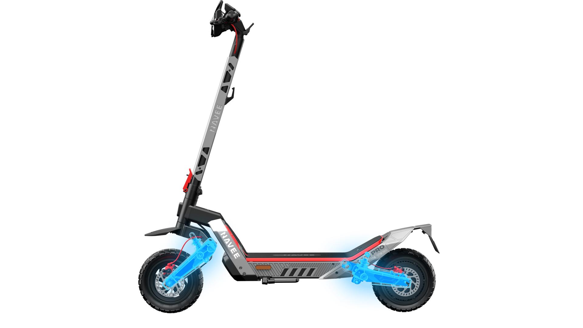The XT5 incorporates dual 2200W motors and offers an ultra-long 110km range, ensuring enduring, carefree fun for outdoor rides. The front and rear dual rocker spring shock absorbers and 12-inch all-terrain wide tires work in tandem when riding, effectively smoothing out bumps and boosting grip to ensure stable, safe riding performance across all road conditions.