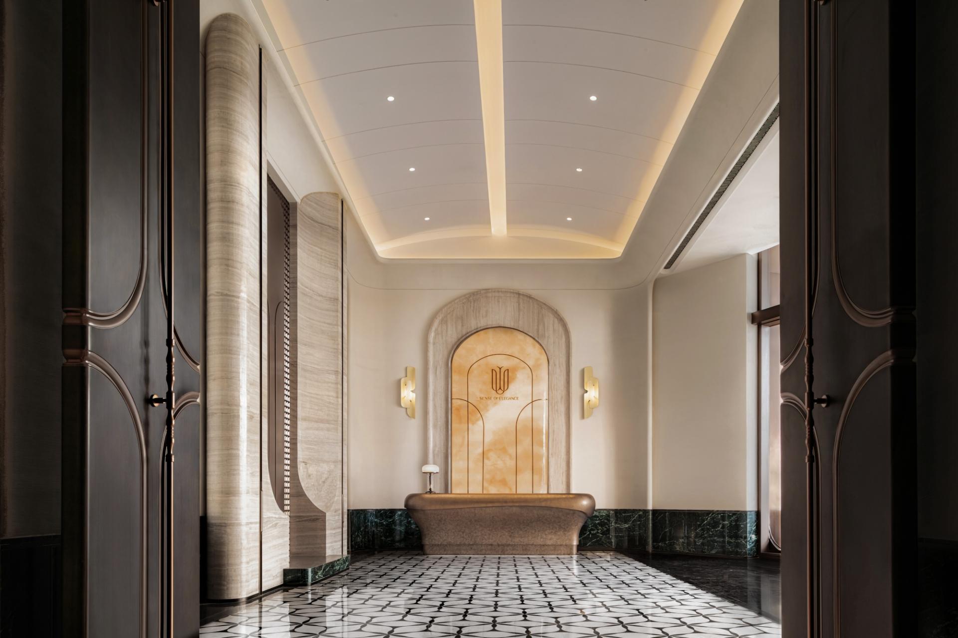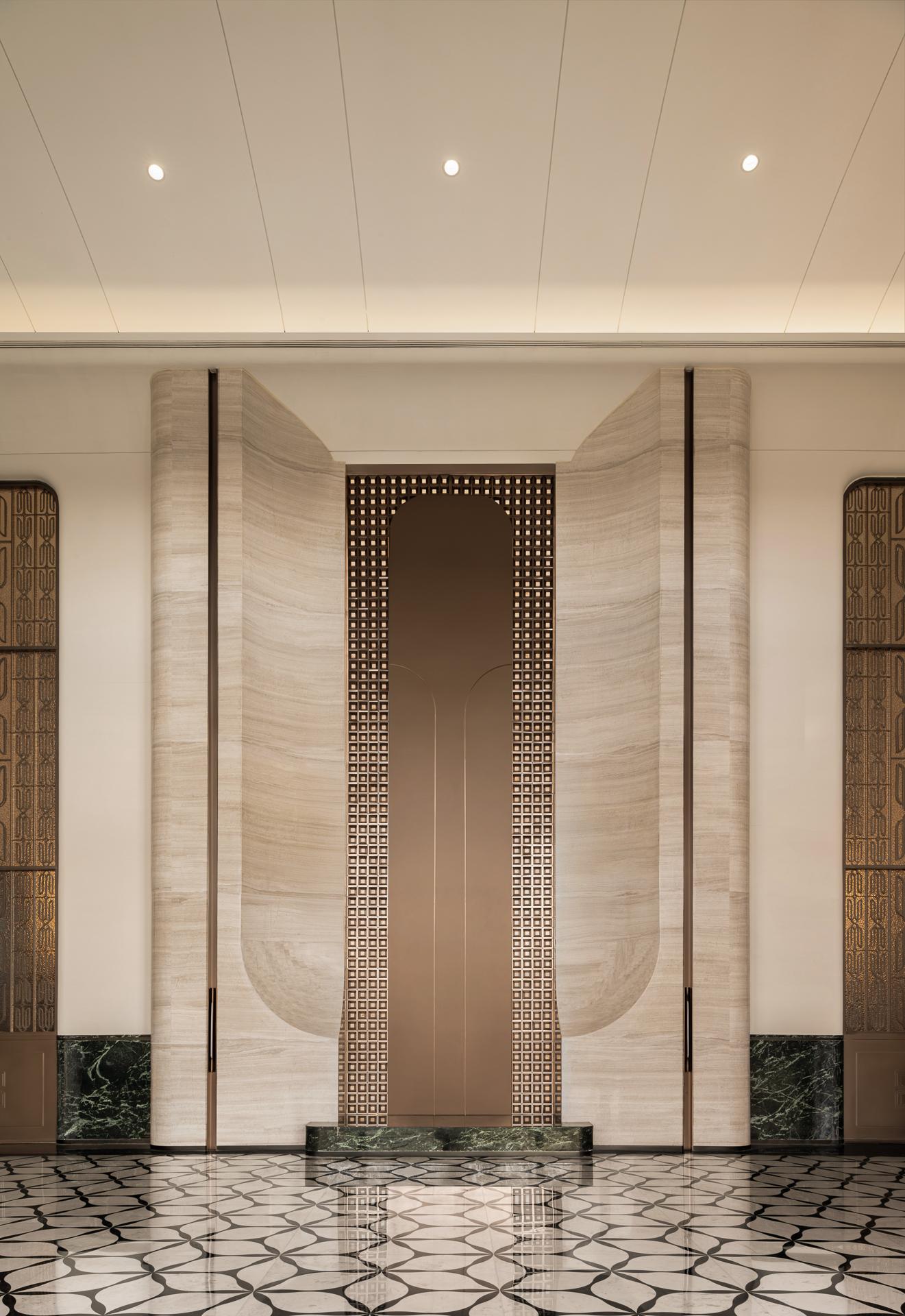 2.Lily Encounter**: The artistic lobby uses jade-textured walls and beige-gold tones to create a warm and restrained Eastern aesthetic, allowing the refined temperament of 'Jade Lily' to emerge amidst light and shadow.