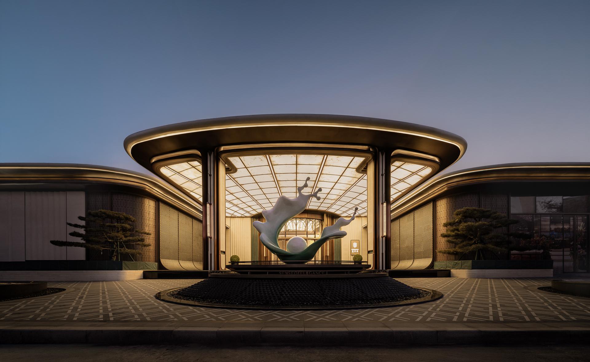 1.Jade Court Fragrance**: An approximately 80-meter hotel-style forecourt, with a lily-shaped entrance echoing the 'Lily with Dew' sculpture, establishes a sense of noble homecoming through its expansive scale.