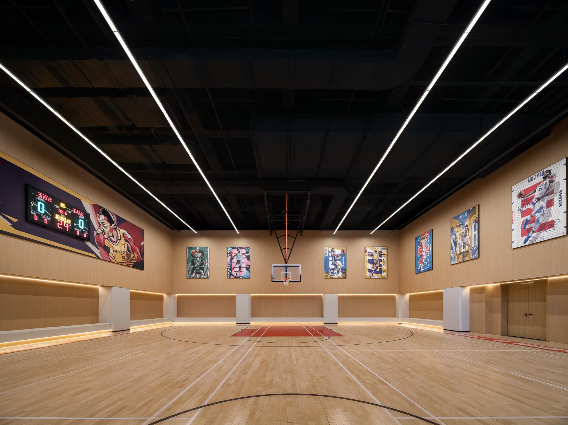 8.Joyful Gatherings in Full Bloom**: Retro tones intertwine with contemporary textures to create a social space for elites; the blue badminton court uses jade-like warmth as its base, allowing passionate sports activity to retain a high-end feel.