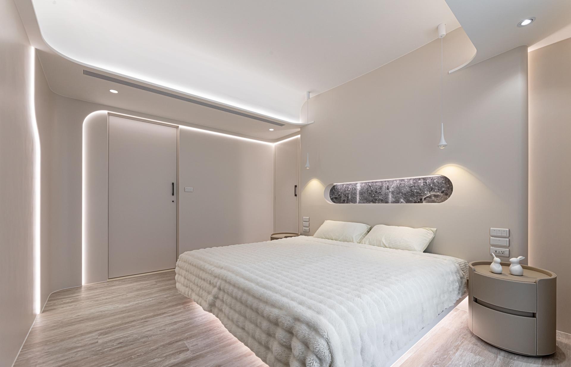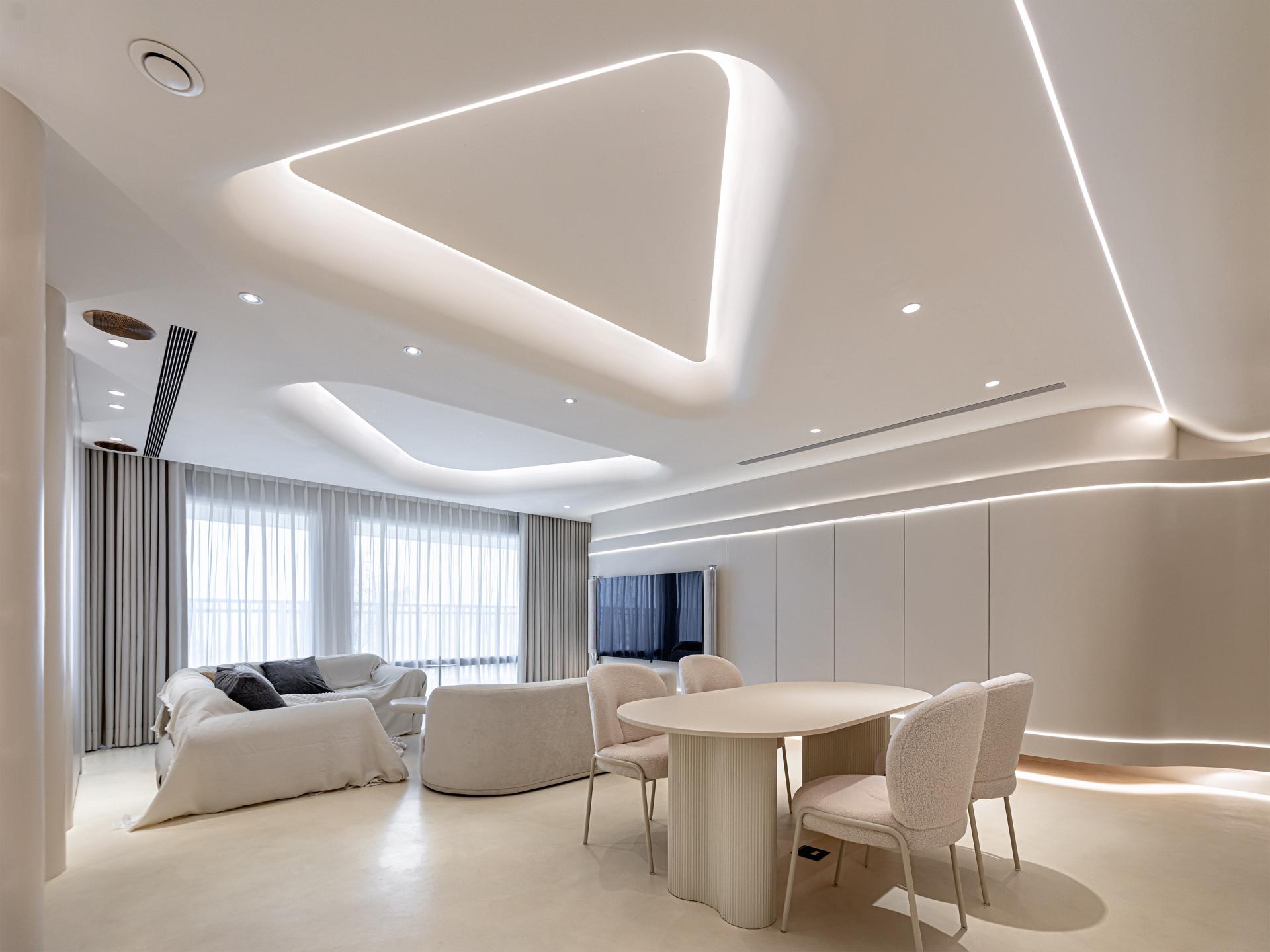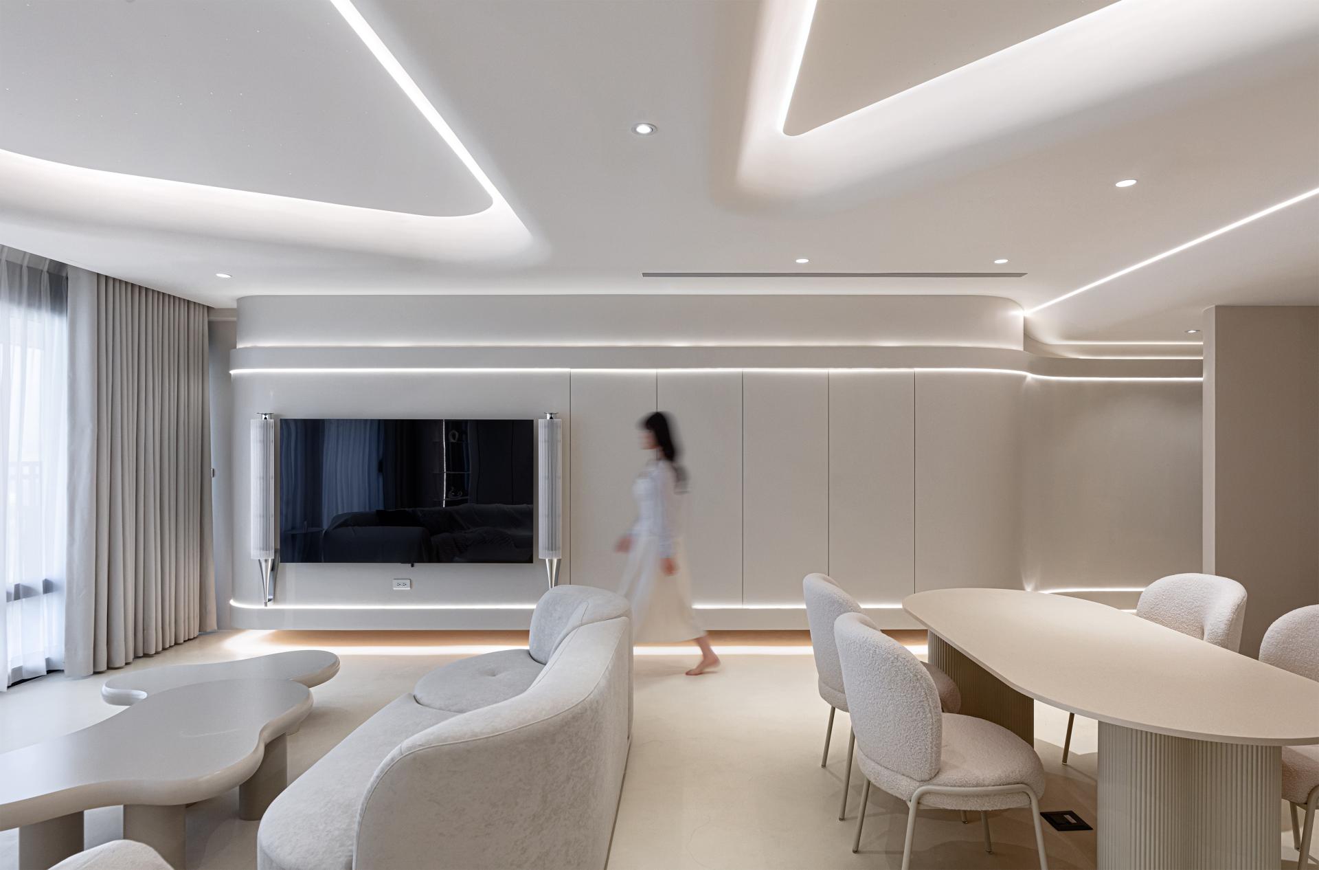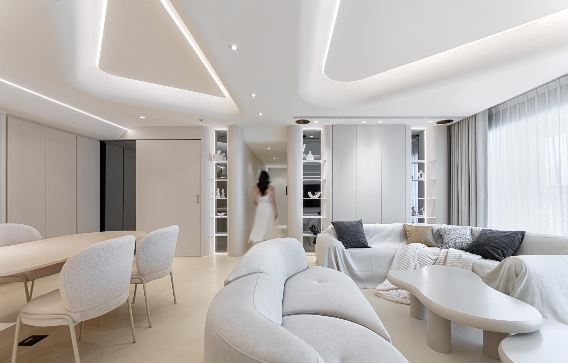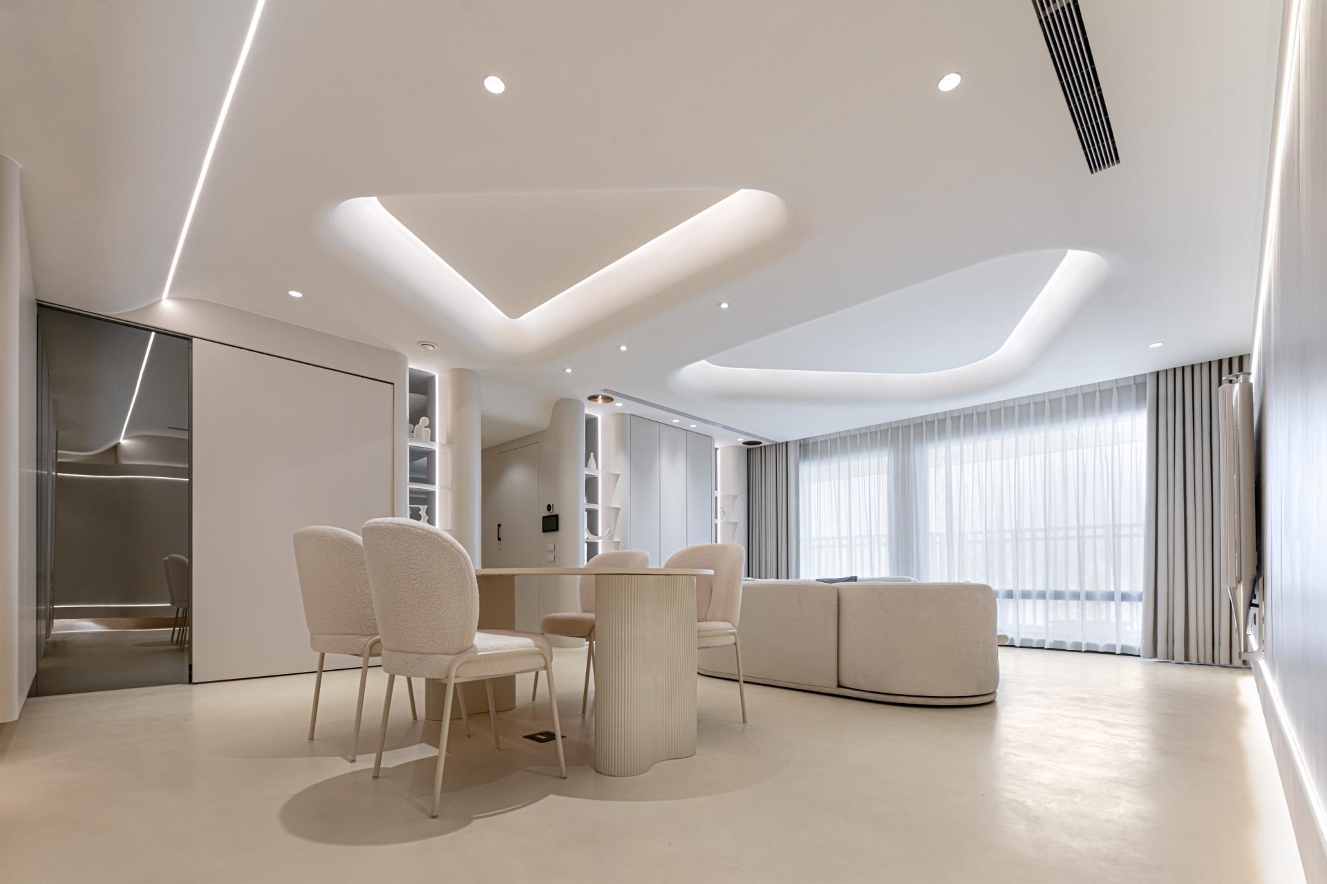 Inspired by the quiet radiance of starlight, the design brings a celestial atmosphere into everyday living. Through soft illumination, flowing curves, and warm neutral tones, the space evokes the feeling of stars gently descending into the interior.