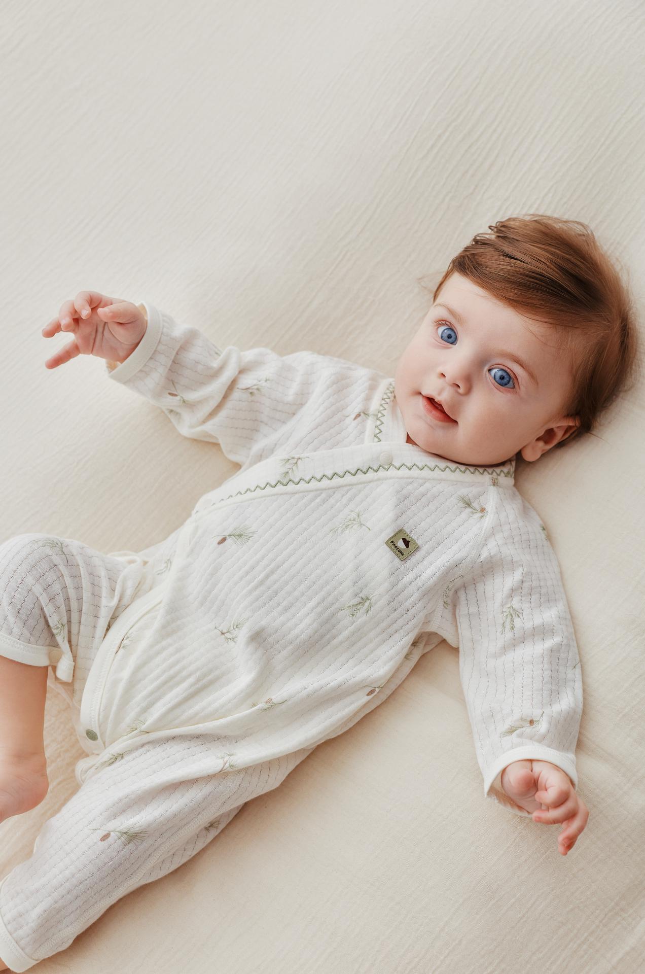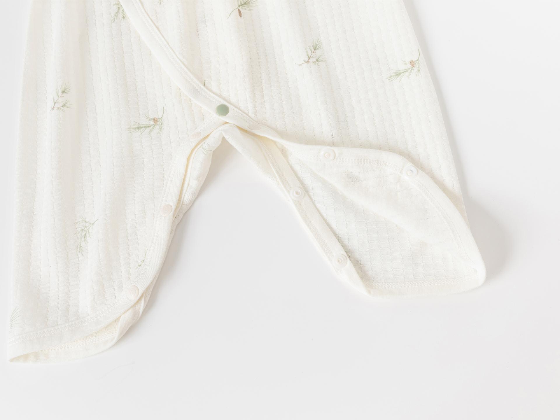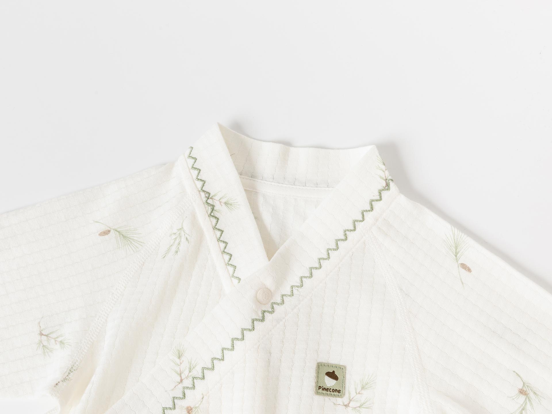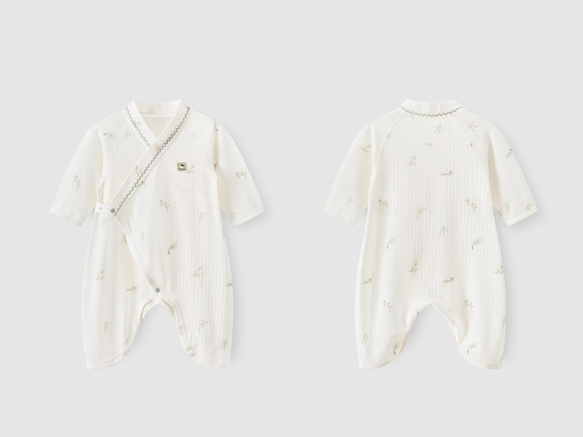 Aesthetically, the baby onesie draws inspiration from Nordic minimalism, utilizing a low-saturation green tone for a fresh and gentle look. The application of a special weaving process creates a vertical wave-like openwork jacquard, resulting in a fine, 3D texture. The overall silhouette adheres to ergonomic principles, taking into account babies’ natural body shapes and movement patterns to balance comfort with freedom. As for safety, the product holds both National Class A certification and GOTS certification. Its pH level aligns with the slightly acidic nature of baby skin, and it is free from harmful substances such as formaldehyde and fluorescent agents, ensuring a safe and reliable wearing experience.