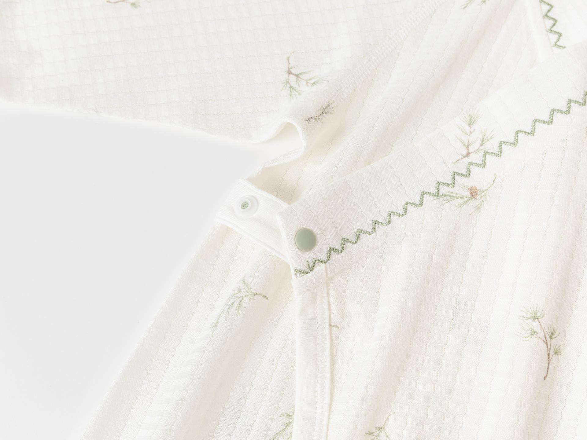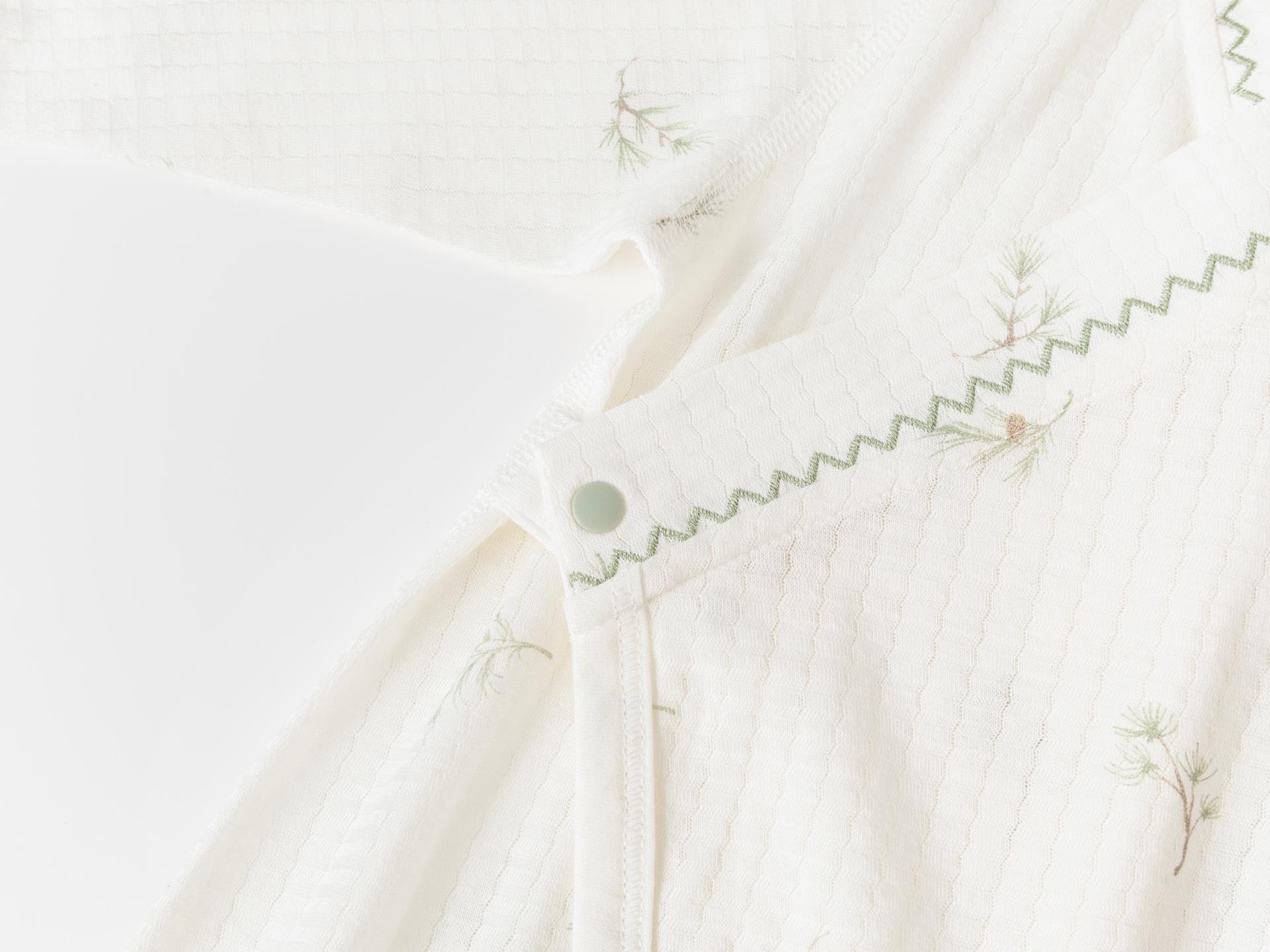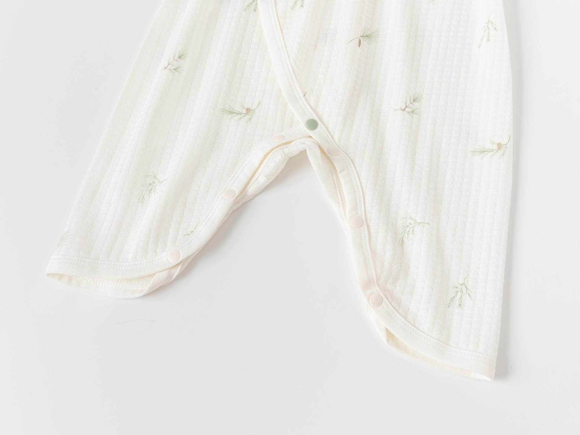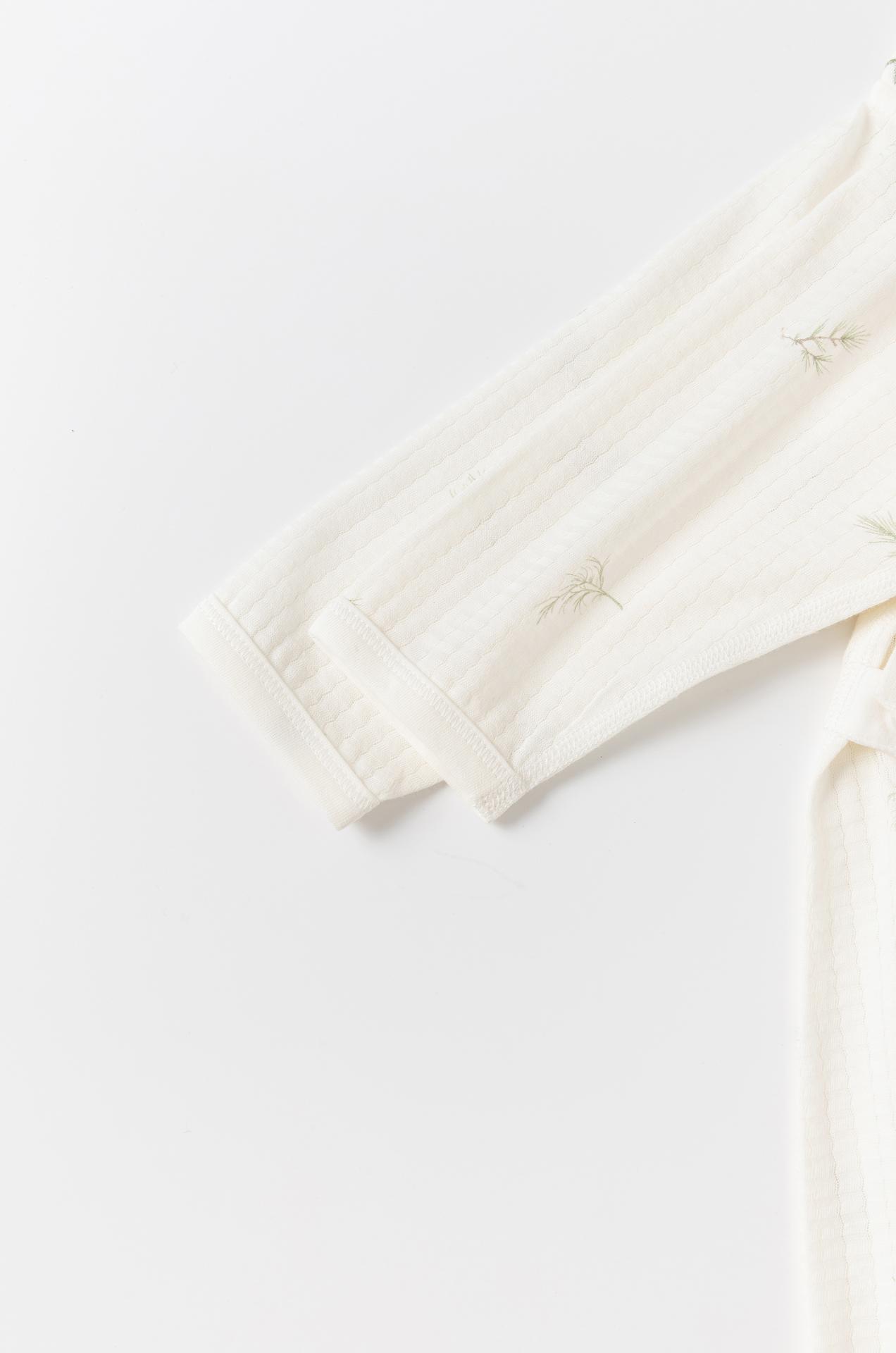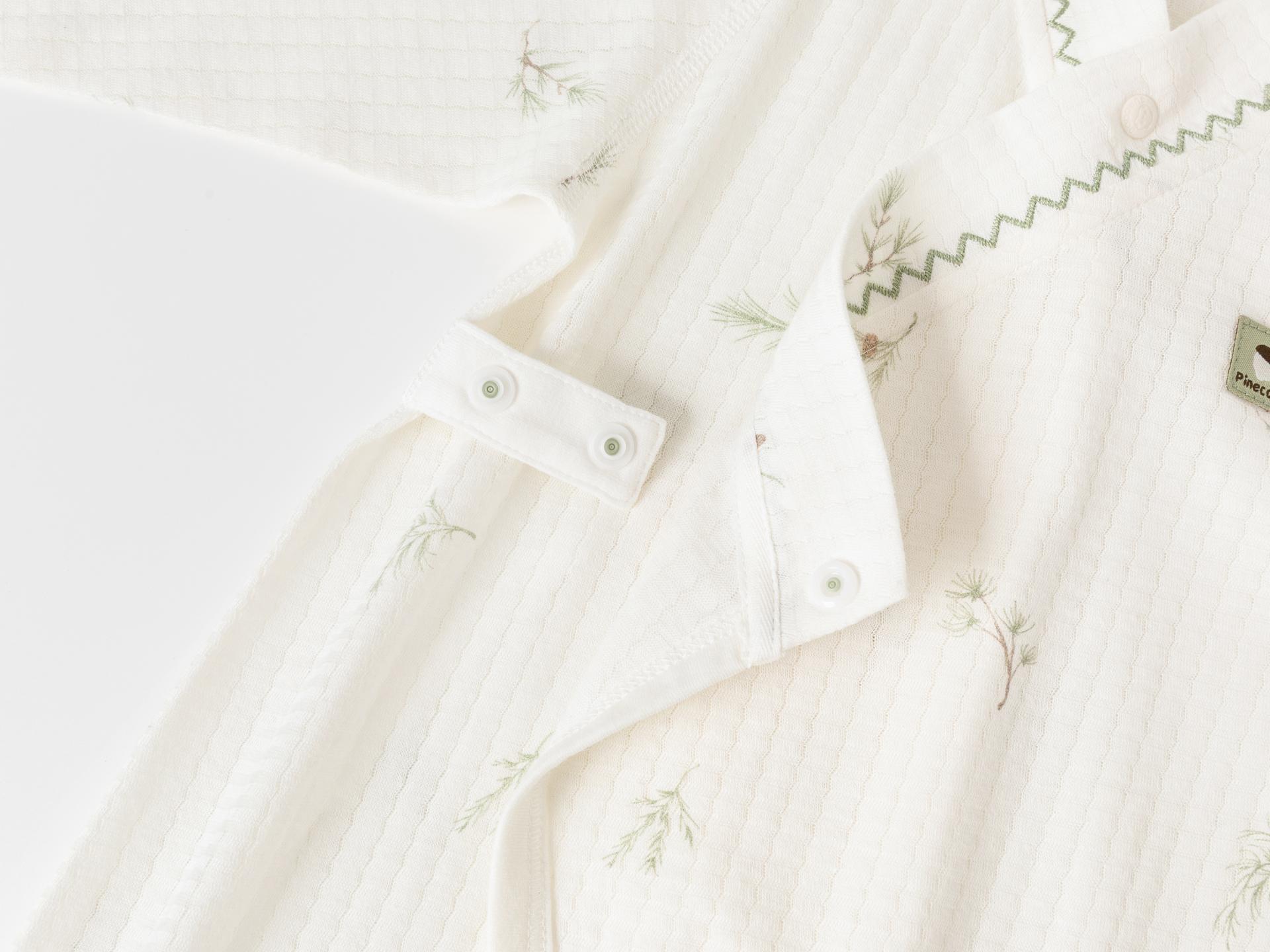 Aesthetically, the baby onesie draws inspiration from Nordic minimalism, utilizing a low-saturation green tone for a fresh and gentle look. The application of a special weaving process creates a vertical wave-like openwork jacquard, resulting in a fine, 3D texture. The overall silhouette adheres to ergonomic principles, taking into account babies’ natural body shapes and movement patterns to balance comfort with freedom. As for safety, the product holds both National Class A certification and GOTS certification. Its pH level aligns with the slightly acidic nature of baby skin, and it is free from harmful substances such as formaldehyde and fluorescent agents, ensuring a safe and reliable wearing experience.
