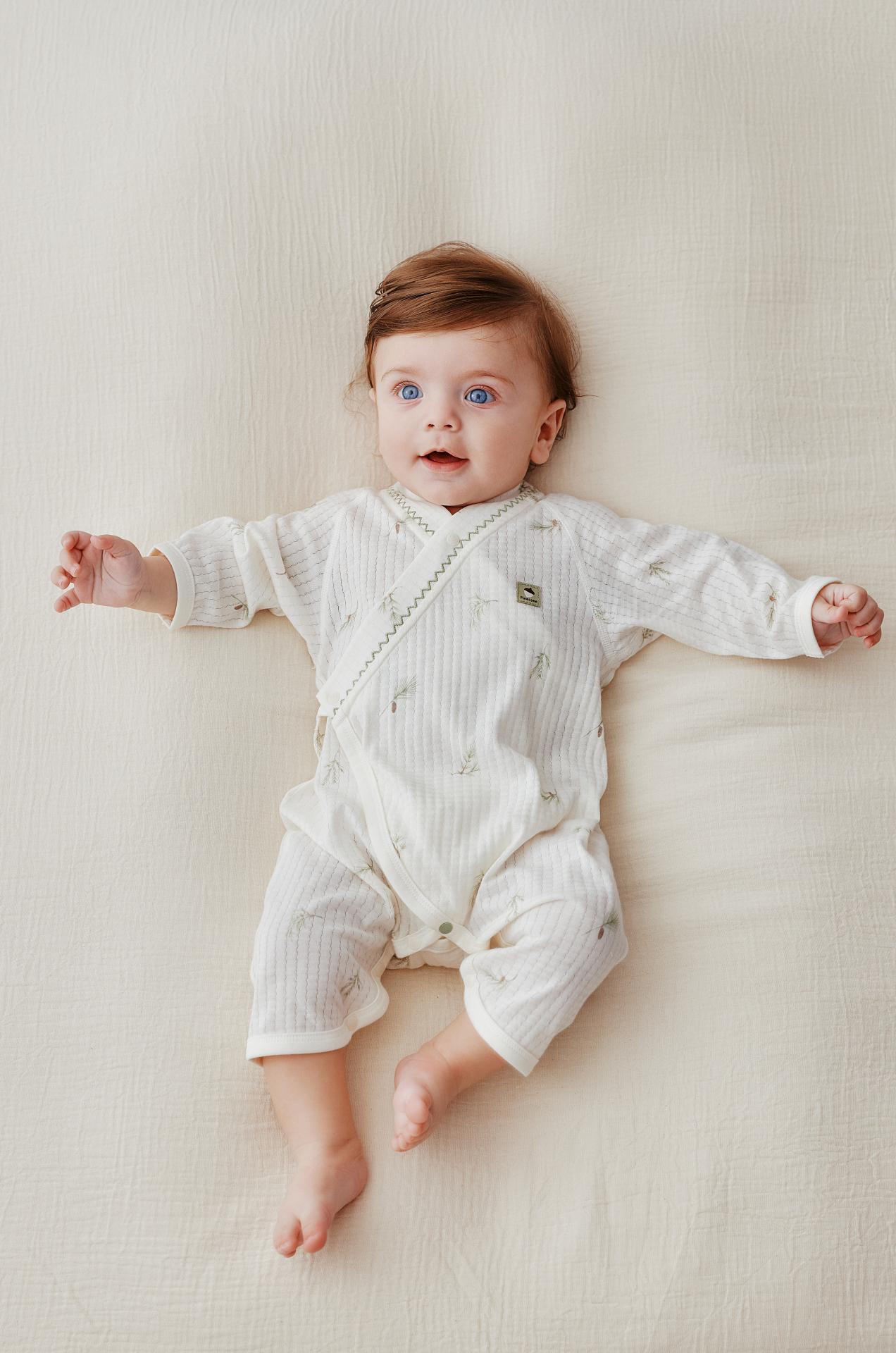 The baby onesie employs 100% GOTS-certified organic cotton, complemented by a seamless construction that minimizes friction and irritation, offering exceptional softness, skin-friendliness, and breathability. Structurally, it innovatively incorporates an inner strap and a color-coded snap fastener at the crotch. The strap ensures a snug fit and outstanding stability, while the snap fastener in a contrasting color streamlines diaper changes and reduces the risk of errors. Furthermore, a double-layer belly-guard design provides extra warmth to meet babies’ need for thermoregulation, with side snap fasteners scientifically positioned based on babies’ body proportions, allowing for multiple-level adjustment to support healthy growth at every stage.