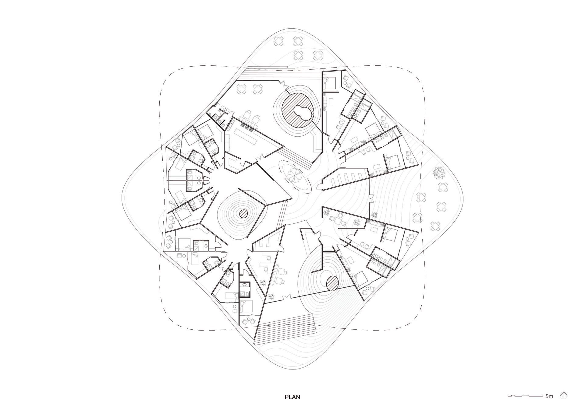 From public spaces to private guest rooms, the design follows the traditional Chinese architectural idea of changing scenery while moving through space, combining function and aesthetics in one integrated design.