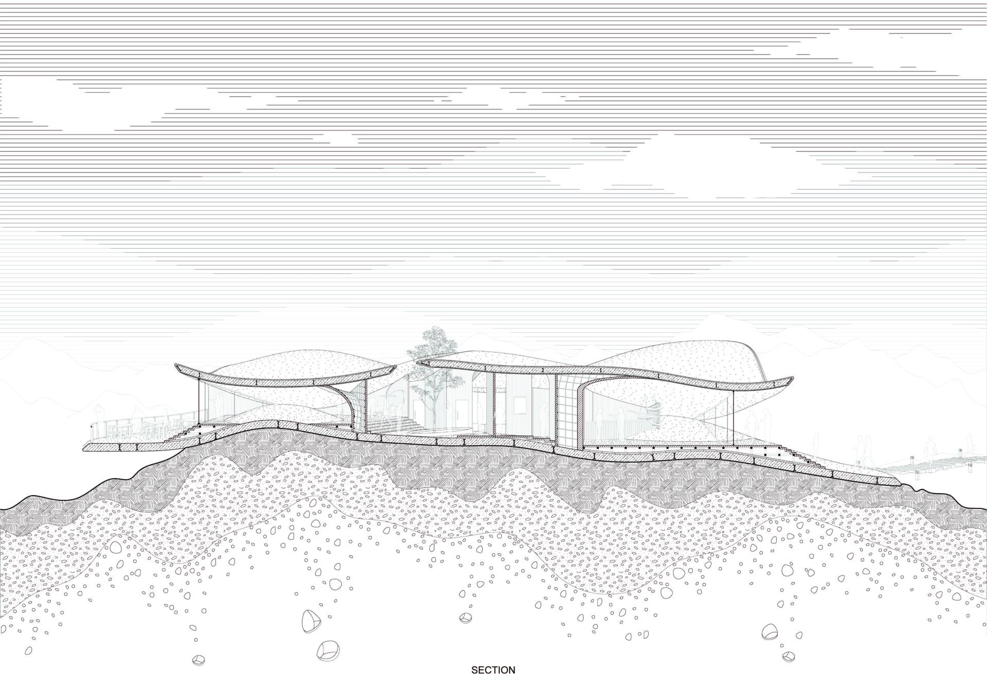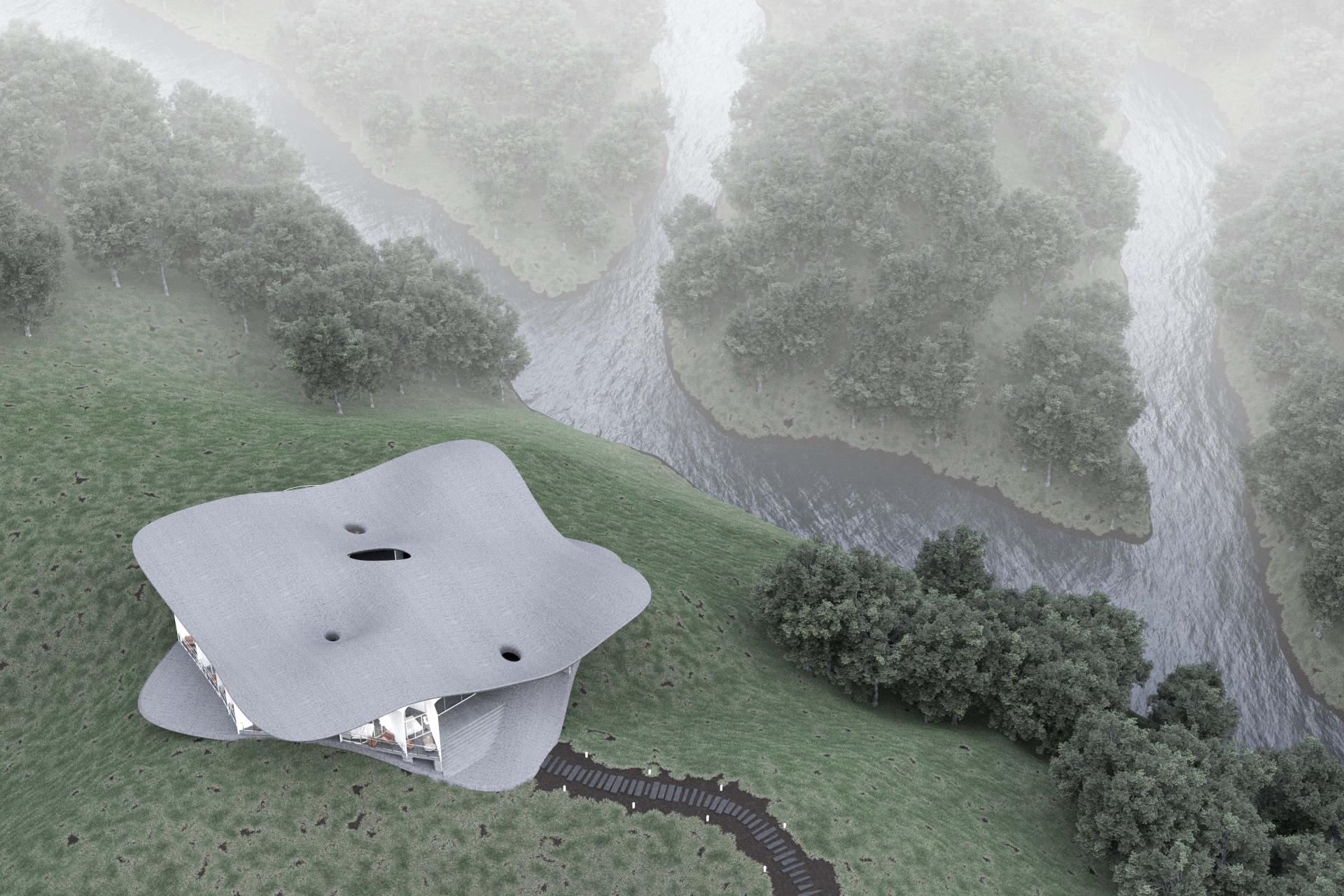From the perspective of views and landscape relationships, the design aims to provide scenery from many different angles. Therefore, a shell structure is used as the main structural system of the building. The overall form was developed through a series of physical models and structural simulation software. Its elegant curved form responds to the mountain skyline and frames a variety of views.