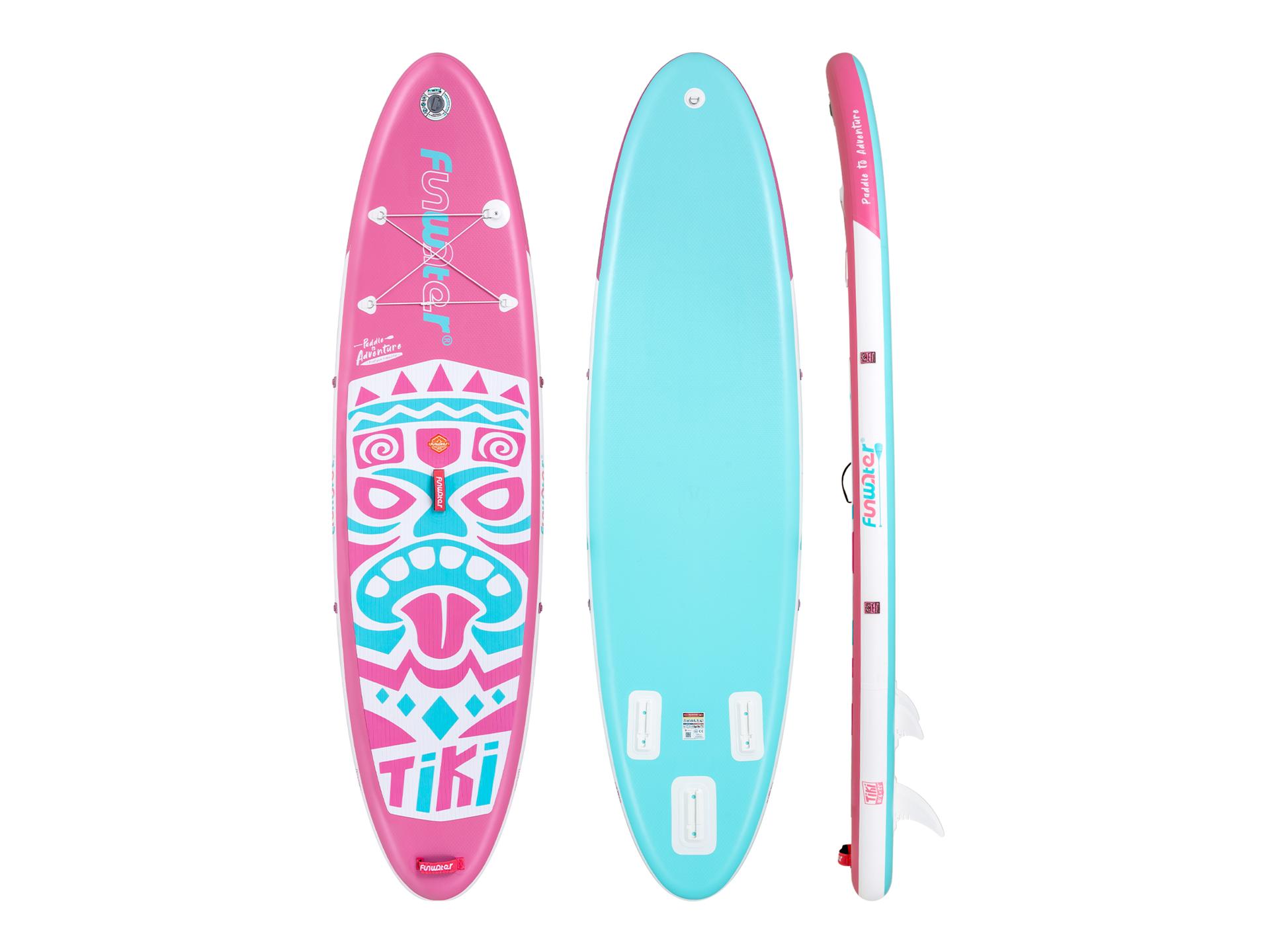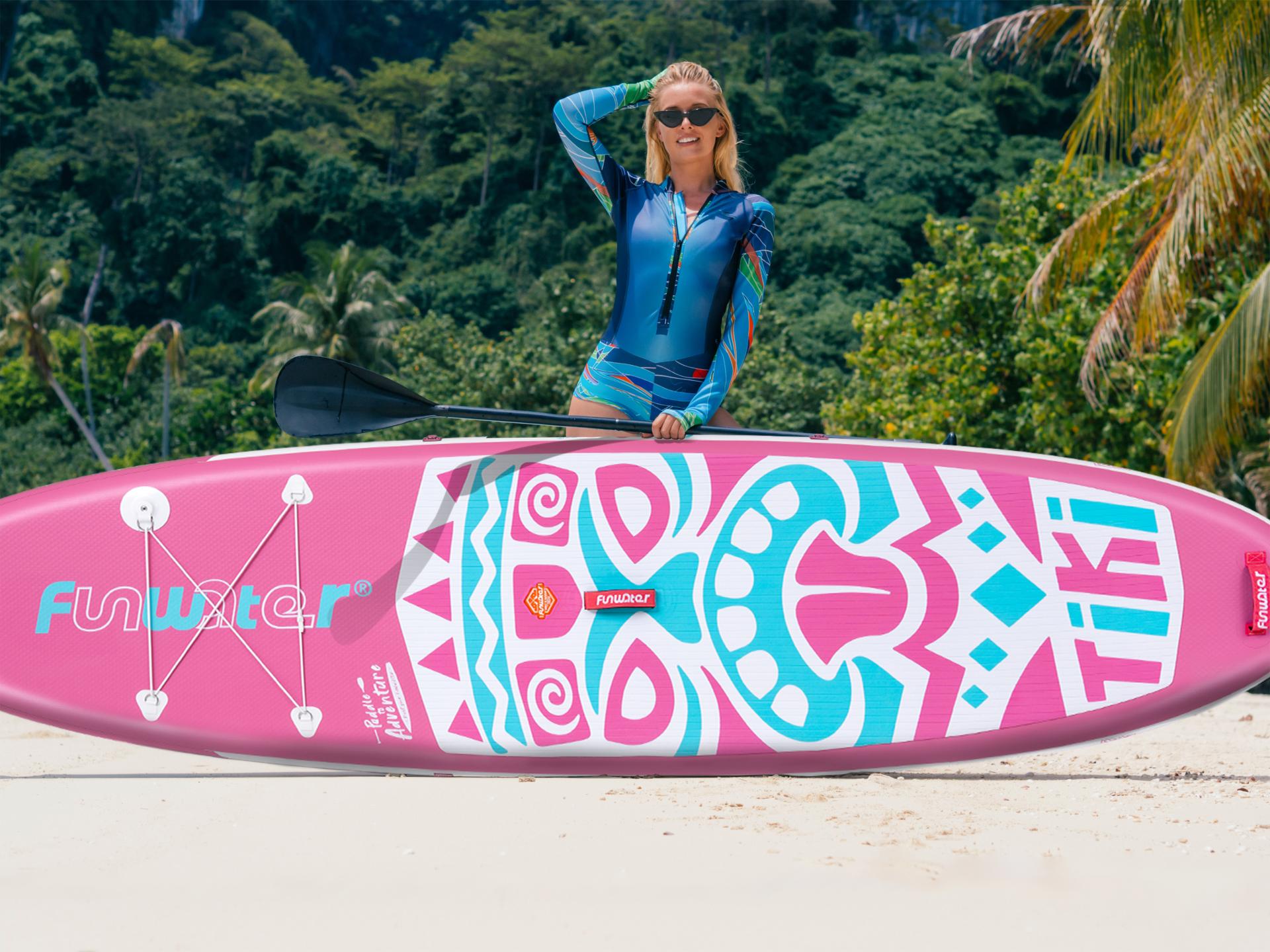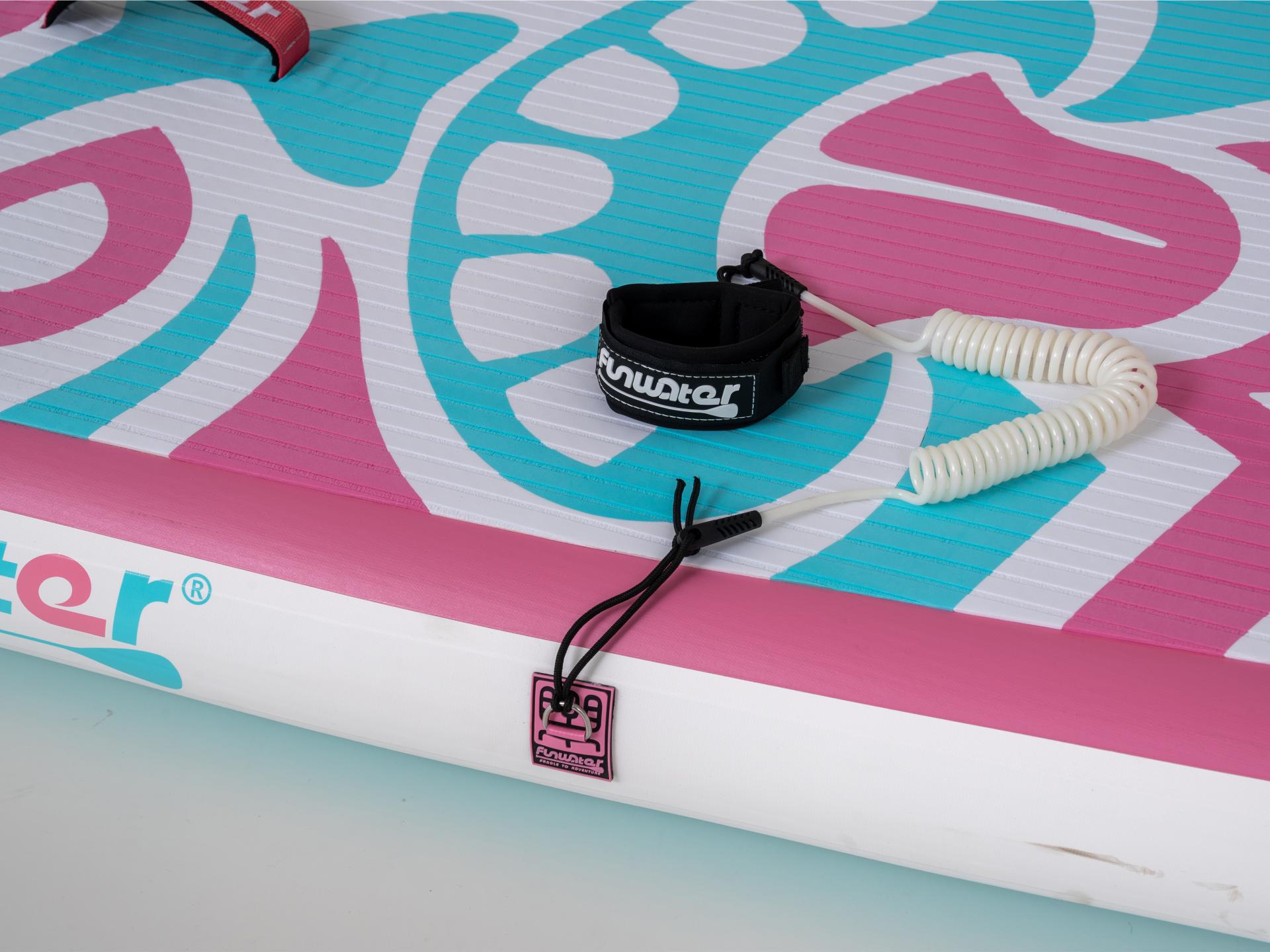 The design draws inspiration from the Hawaiian Aloha Spirit—laid-back, joyful, and passionate—thoughtfully translating these qualities into its visual language. Fluid lines and decorative accents create a clean, distinctive look, while the pink-and-blue color scheme captures the vibrancy of island life. This sleek, curved silhouette is more than just visually striking and universally appealing; it enhances stability and makes the board easier to carry. Its material selection is equally thoughtful, pairing a durable drop-stitch core with anti-slip EVA deck pads and PVC rails to ensure a robust structure while delivering lightweight performance. Designed for real-world utility, the Aloha Pop packs down easily for travel, featuring a multi-mount base for action cameras like GoPro, side D-rings for secure seat attachment, and essential safety features for added peace of mind on the water. These practical elements transform the paddle board from a simple cruiser into a versatile and safe platform, ready for everything from relaxed paddling to dynamic water adventures.