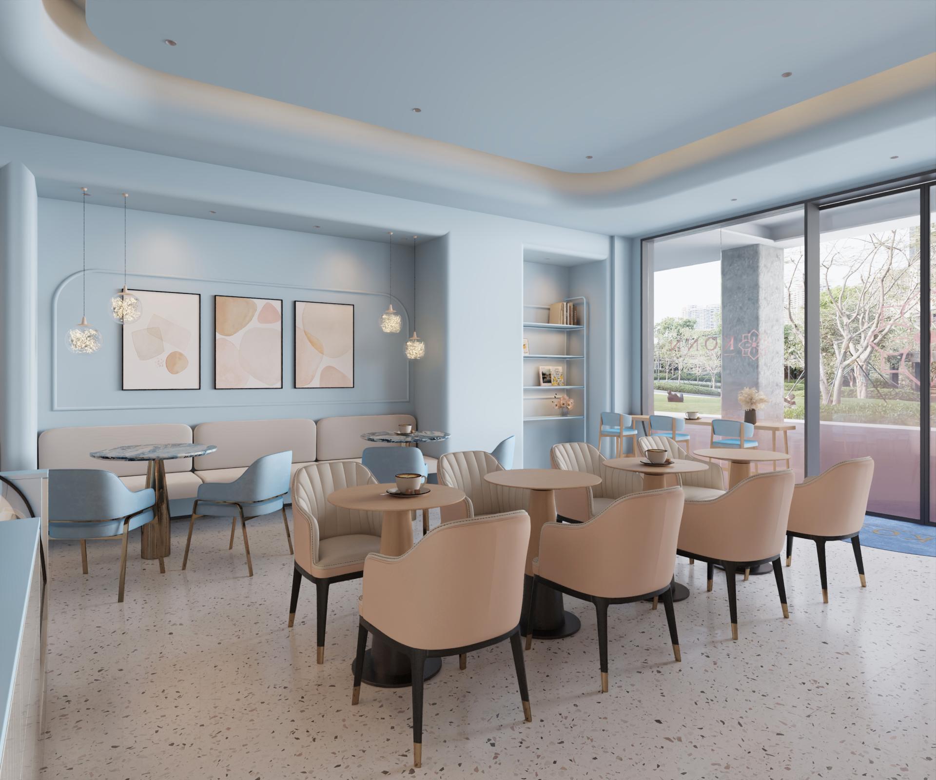 Spatially, the design is guided by the themes of “lightness” and “flow,” translating the abstract idea of wellness into a tangible spatial experience. A soft blue palette forms the primary visual language, evoking clarity and purity, while accents of soft orange introduce warmth, vitality, and emotional balance. Color is not merely decorative, but serves as a subtle medium for shaping users’ perception and mood within the space.