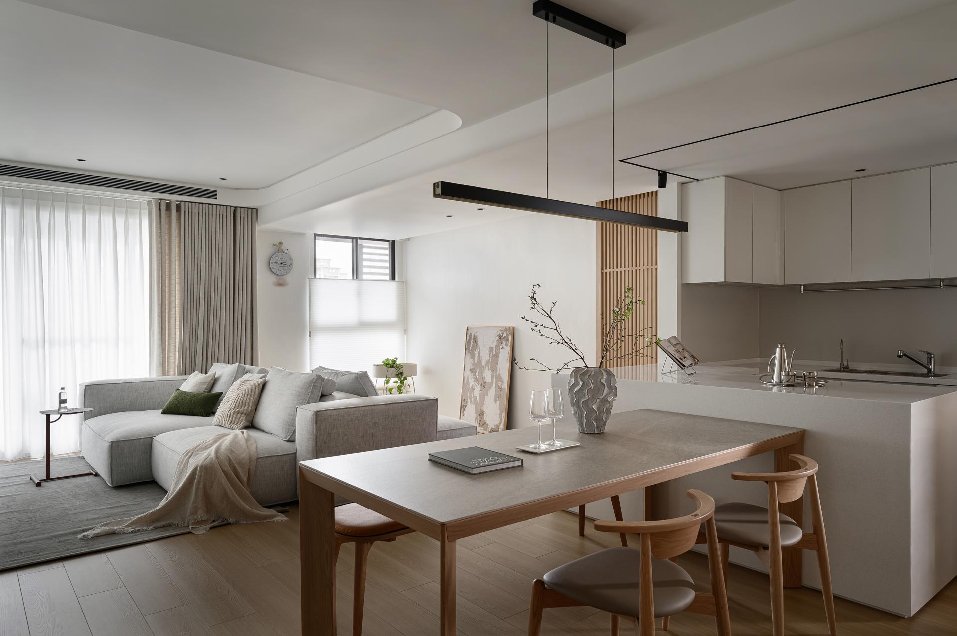 At the heart of the residence, the kitchen island becomes the core of both interaction and visual balance. Beyond integrating storage and food preparation, it links the living and dining areas, evolving into the household’s central node of connection. Circulation flows clearly and naturally, while textures and light weave together layers of perception—bridging the “visible ties of daily life” with the “invisible warmth of emotion.” In this way, the home transcends its role as a vessel for living, becoming instead a gentle archive of family stories, quietly recording moments of growth, companionship, and a sense of belonging.