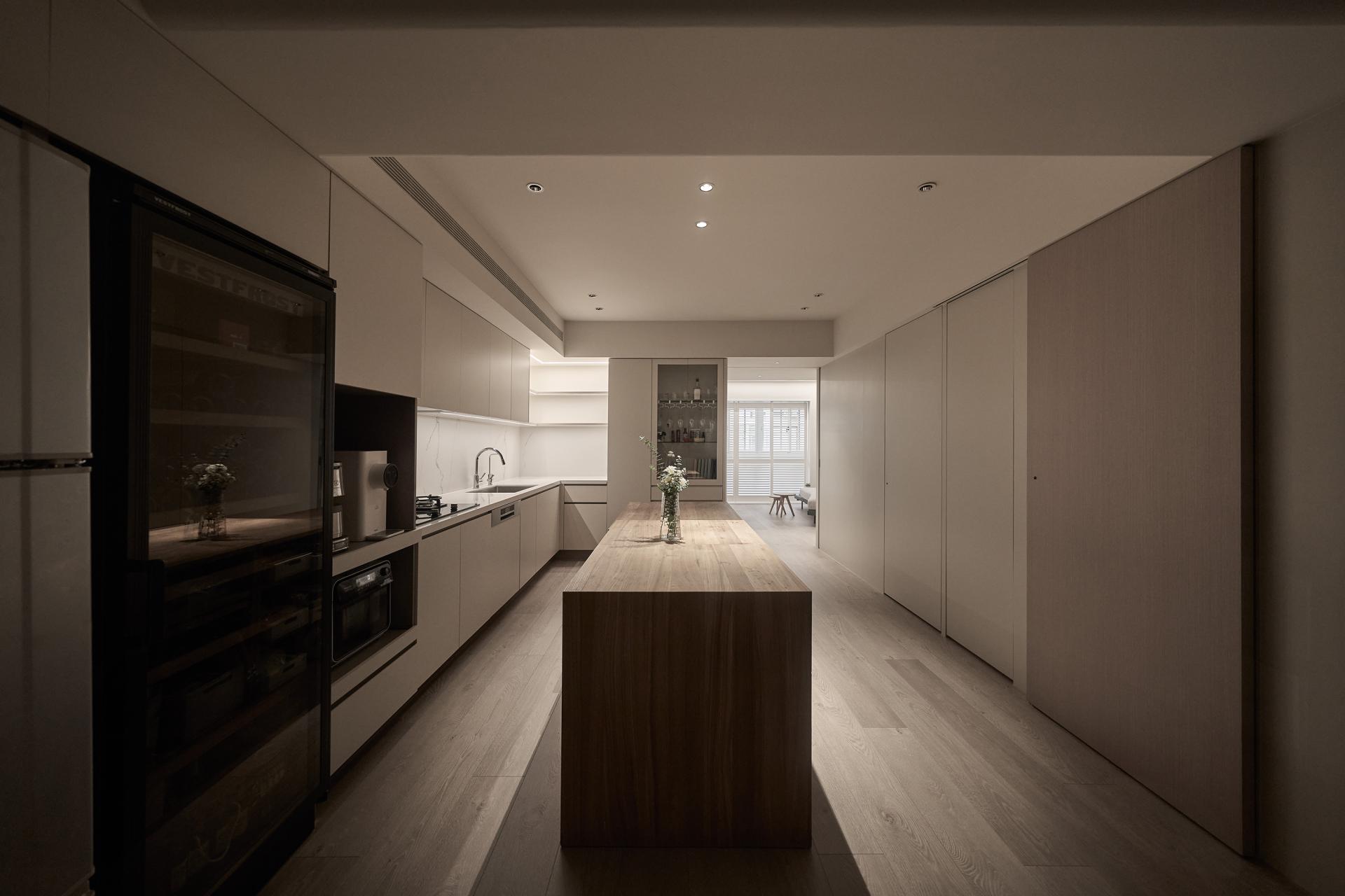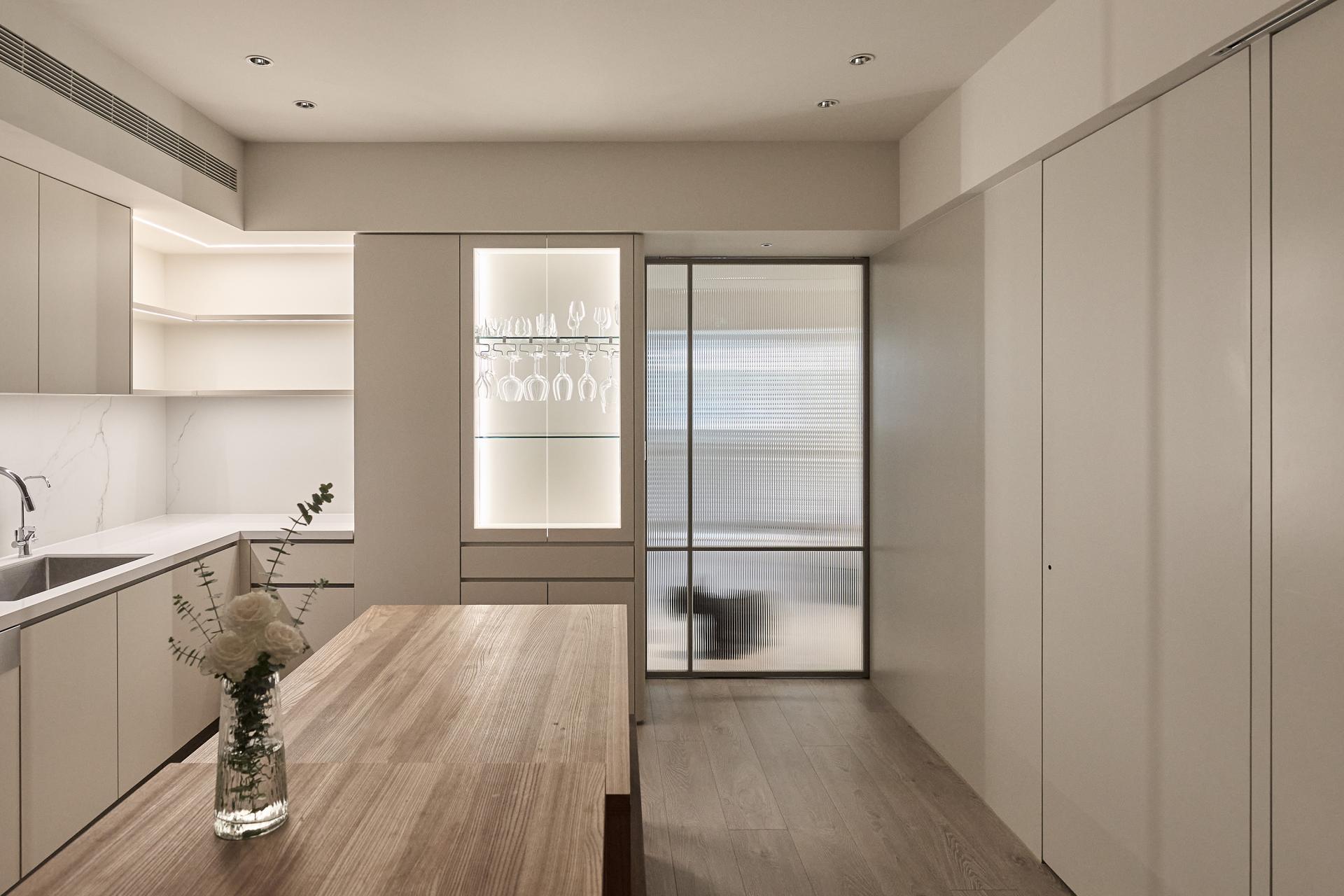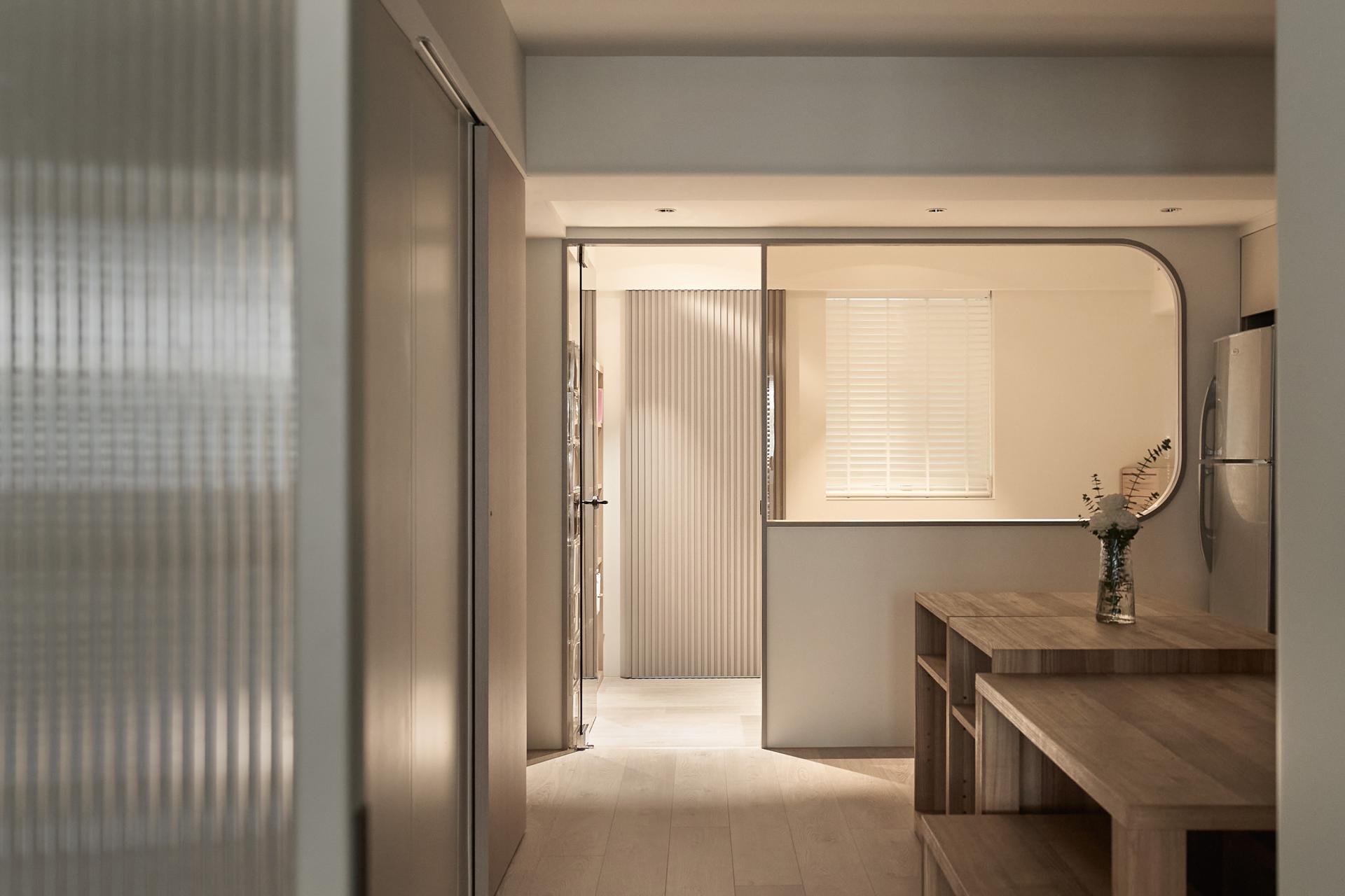 The original master bedroom was overly expansive, constricting circulation and blocking natural light. The designers strategically removed all interior partitions to resolve this problem and established a clear central axis to anchor the home. Around this axis, they gently arranged the private quarters near the kitchen and dining area, while a broad, unobstructed path was preserved through the center, allowing movement to flow effortlessly. What was once a cramped dining space is now transformed into a generous, multifunctional area that the family can adapt to daily needs and gatherings. By unifying the size of the three bedrooms to ensure comfort, the designers thoughtfully freed up fragmented space and carefully repurposed it as an independent guest bathroom. This addition significantly enhances the family’s daily routines, enabling all three members to bathe and prepare simultaneously with ease. The result is not only a home that fully embodies the functions required for modern life but also a design that fulfills the studio’s belief: to endow each space with enduring value through thoughtful planning.
