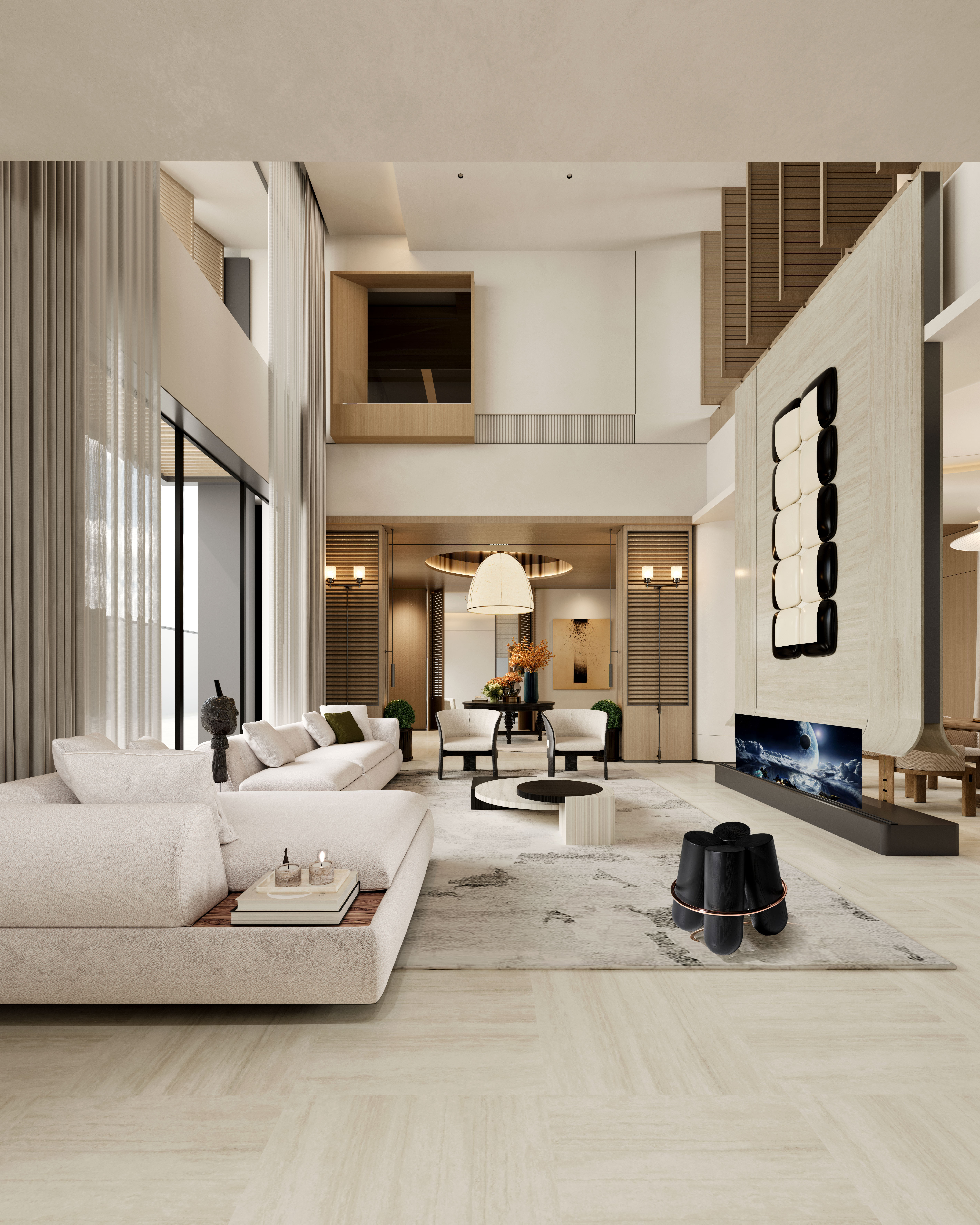 The lobby exemplifies Peng Space Interiors’ commitment to architectural craftsmanship, blending modern precision with cultural artistry. This project stands as a reflection of their design philosophy — transforming interiors into timeless experiences that merge nature, culture, and contemporary living.