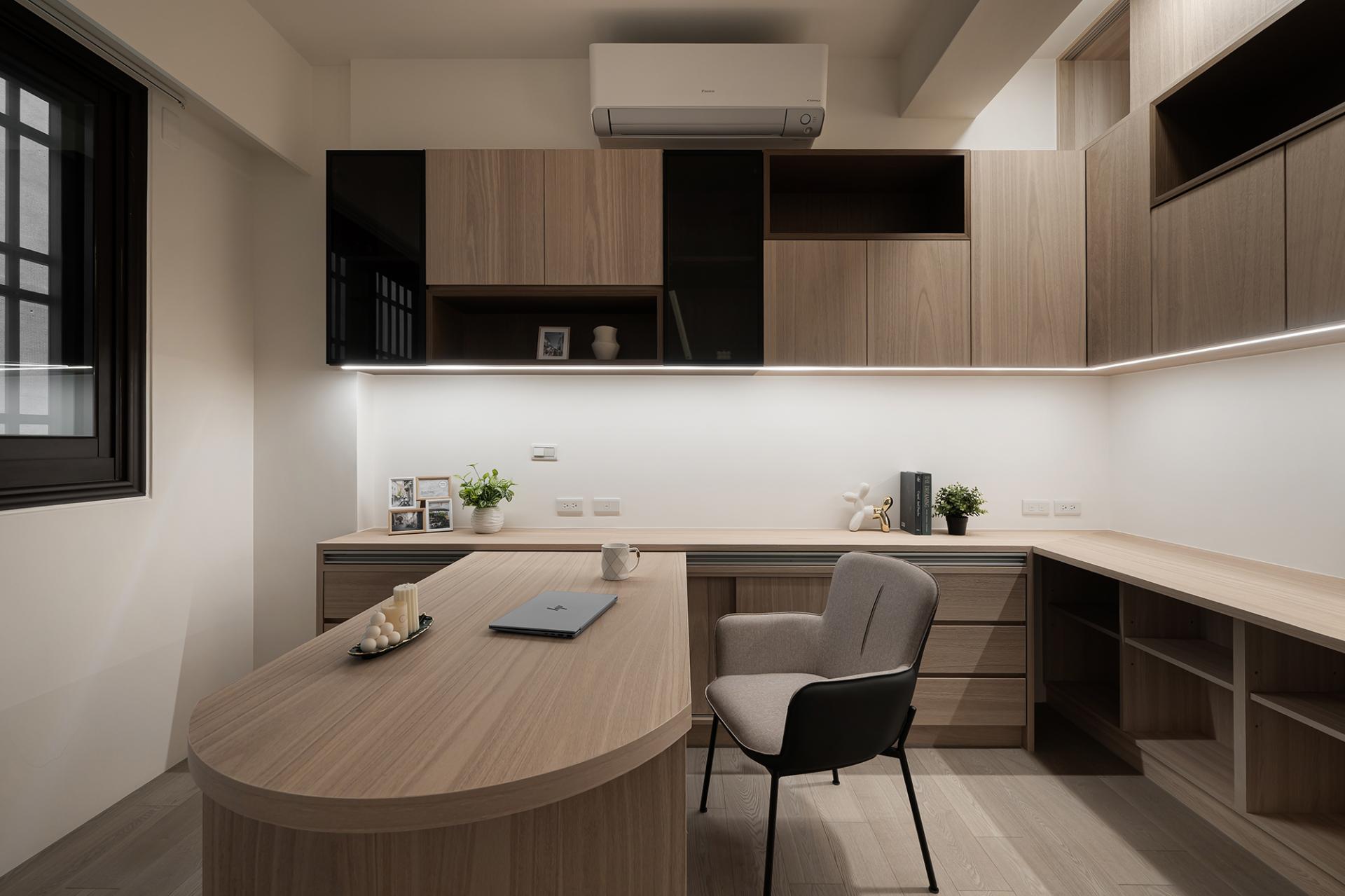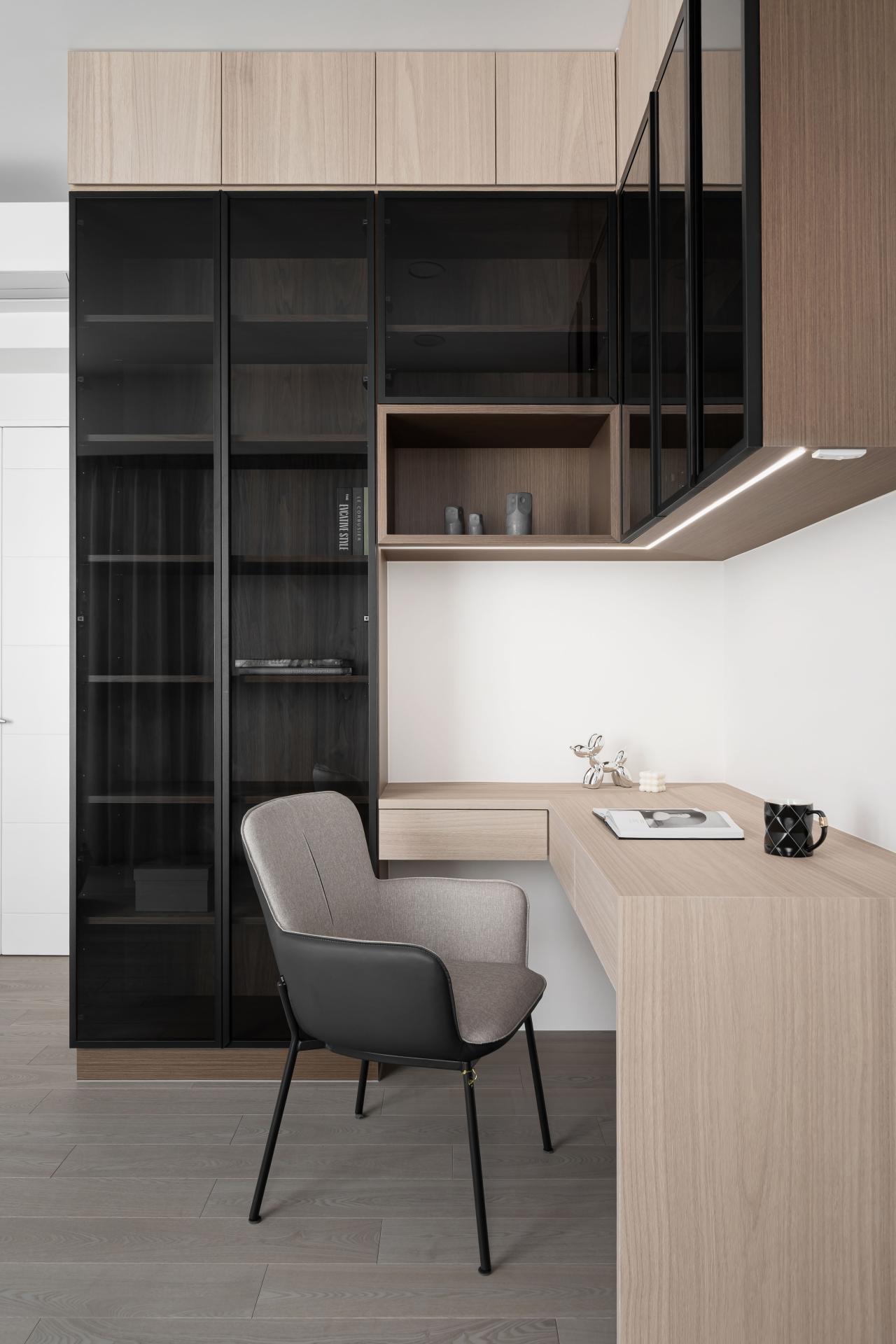 In addition, the recessed lighting in the living room features a versatile three-color light source, allowing occupants to effortlessly switch between natural light, bright white light, and warm yellow light. This flexibility invites the space to evolve with the passage of time and shifts in mood, creating a variety of atmospheric experiences tailored to different needs. Furthermore, the entirety of the room is masterfully constructed using high-quality wood veneer panels. As light dances across the lines and textures, it reveals their purity and enhances the overall aesthetic.