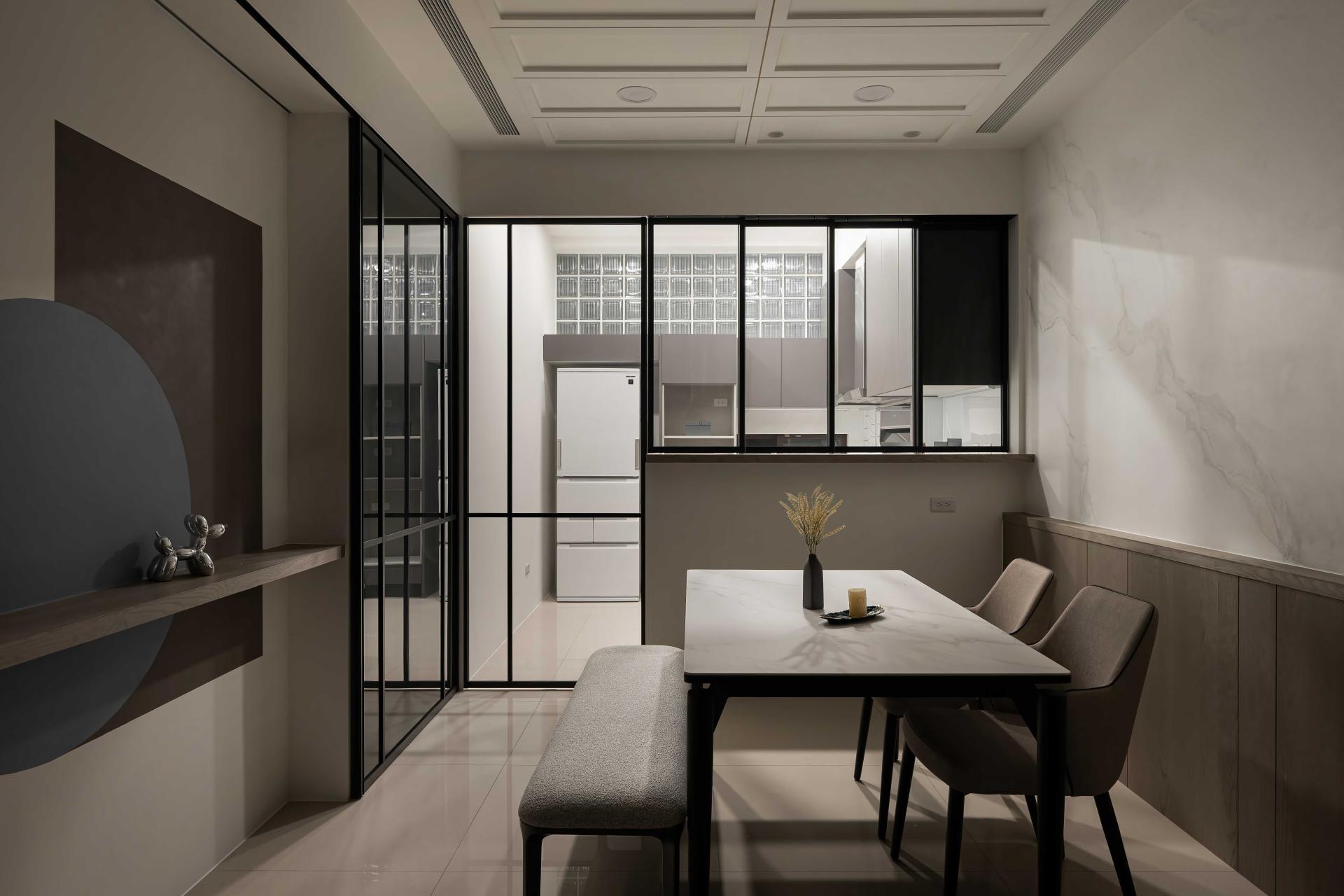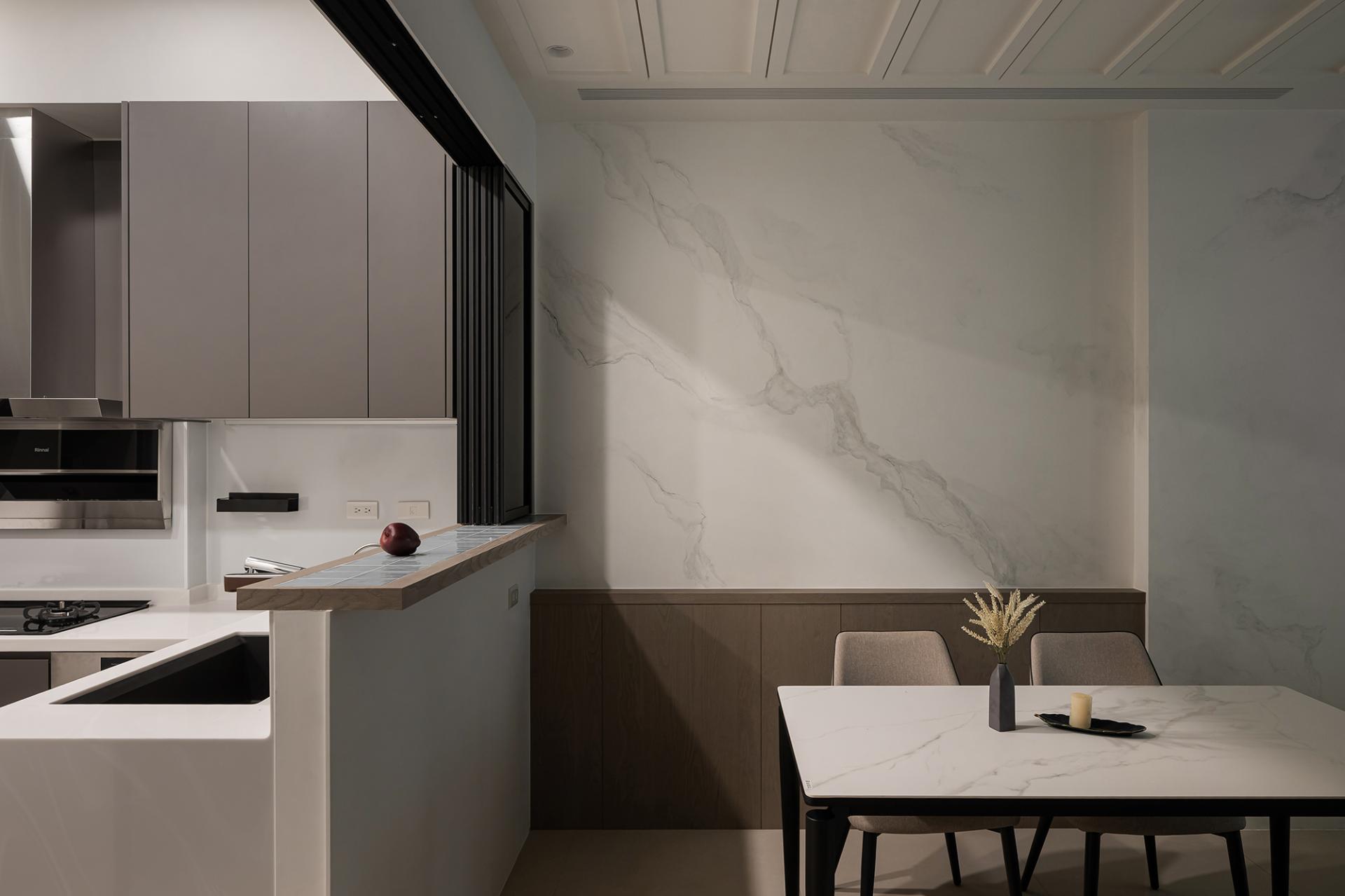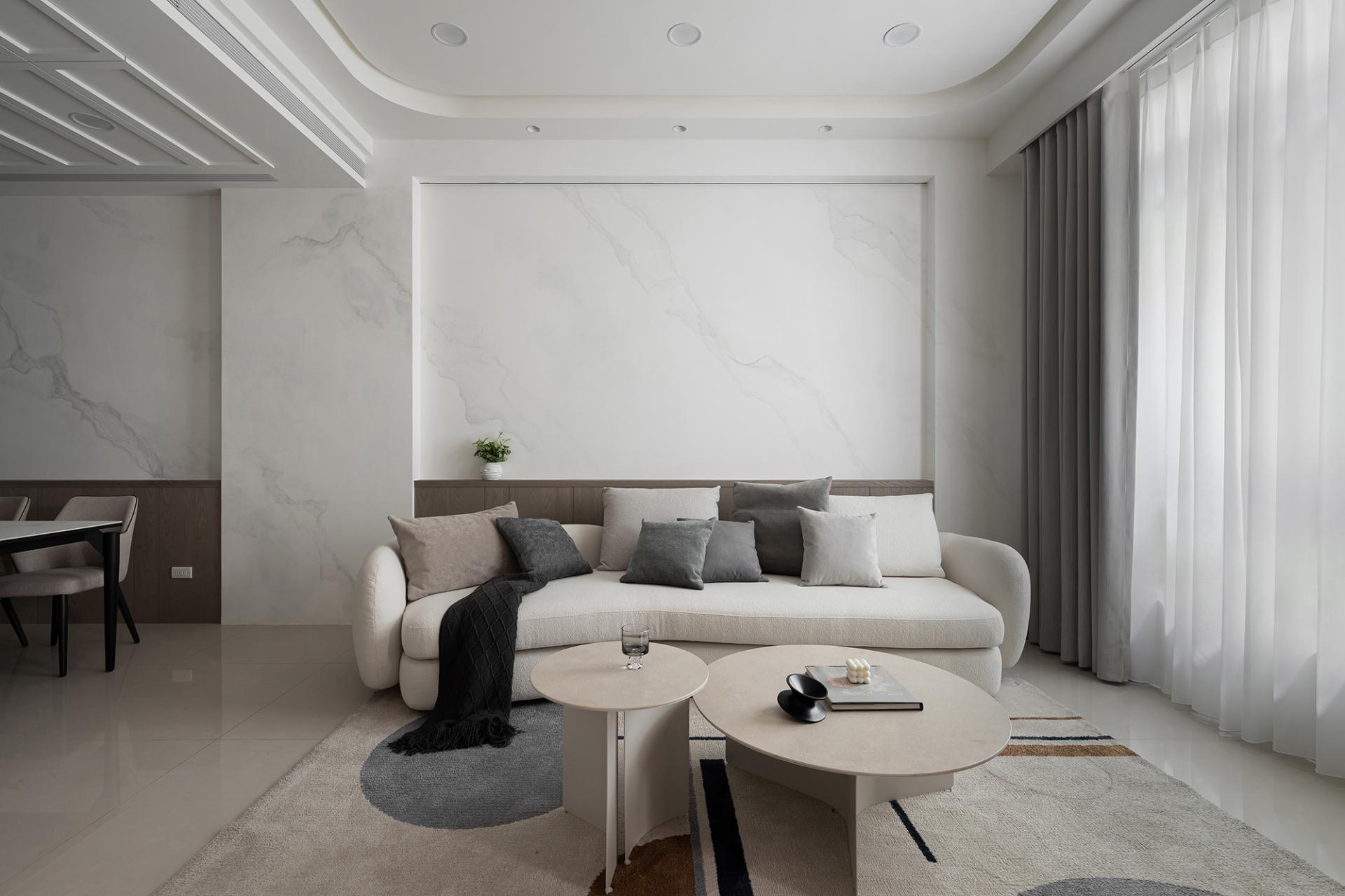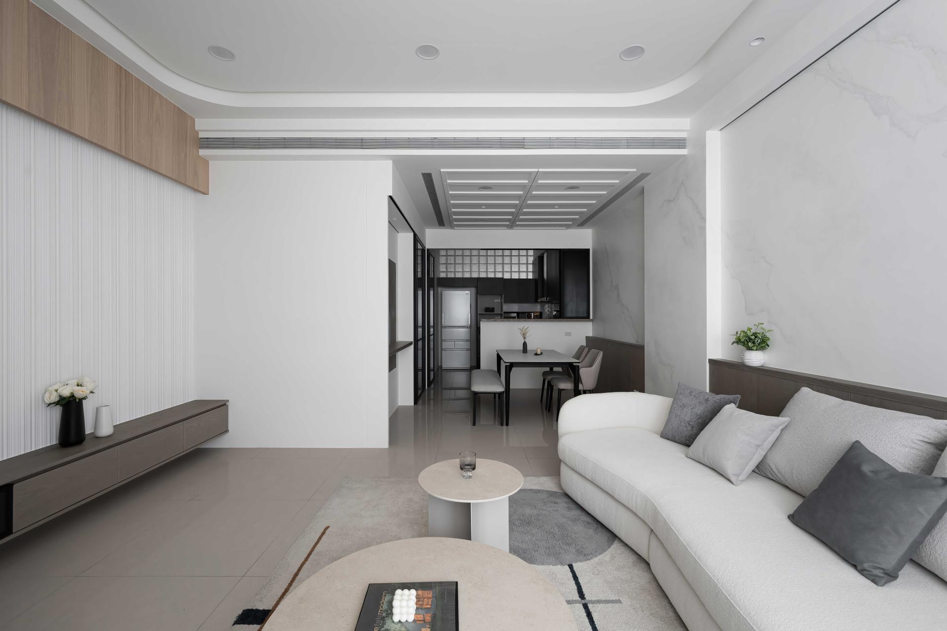 This project is thoughtfully grounded in a minimalist aesthetic, establishing a serene yet striking spatial foundation. The design team skillfully employs a harmonious palette of black, white, and gray, which is beautifully complemented by rich dark wood veneers that grace the interiors. This deliberate choice not only resonates with the residents' personal color preferences but also fosters an atmosphere that is both tranquil and luminous. Moreover, curved elements have been intricately integrated into the design, transforming the homeowner's cherished soft curves into a cohesive spatial arrangement. As these lines dance and converge, they unfold complex layers through their crisscrossing patterns, inviting warmth and calmness to permeate the refined simplicity of daily life. Ultimately, this design transcends mere aesthetics, creating an engaging environment that balances comfort and elegance.