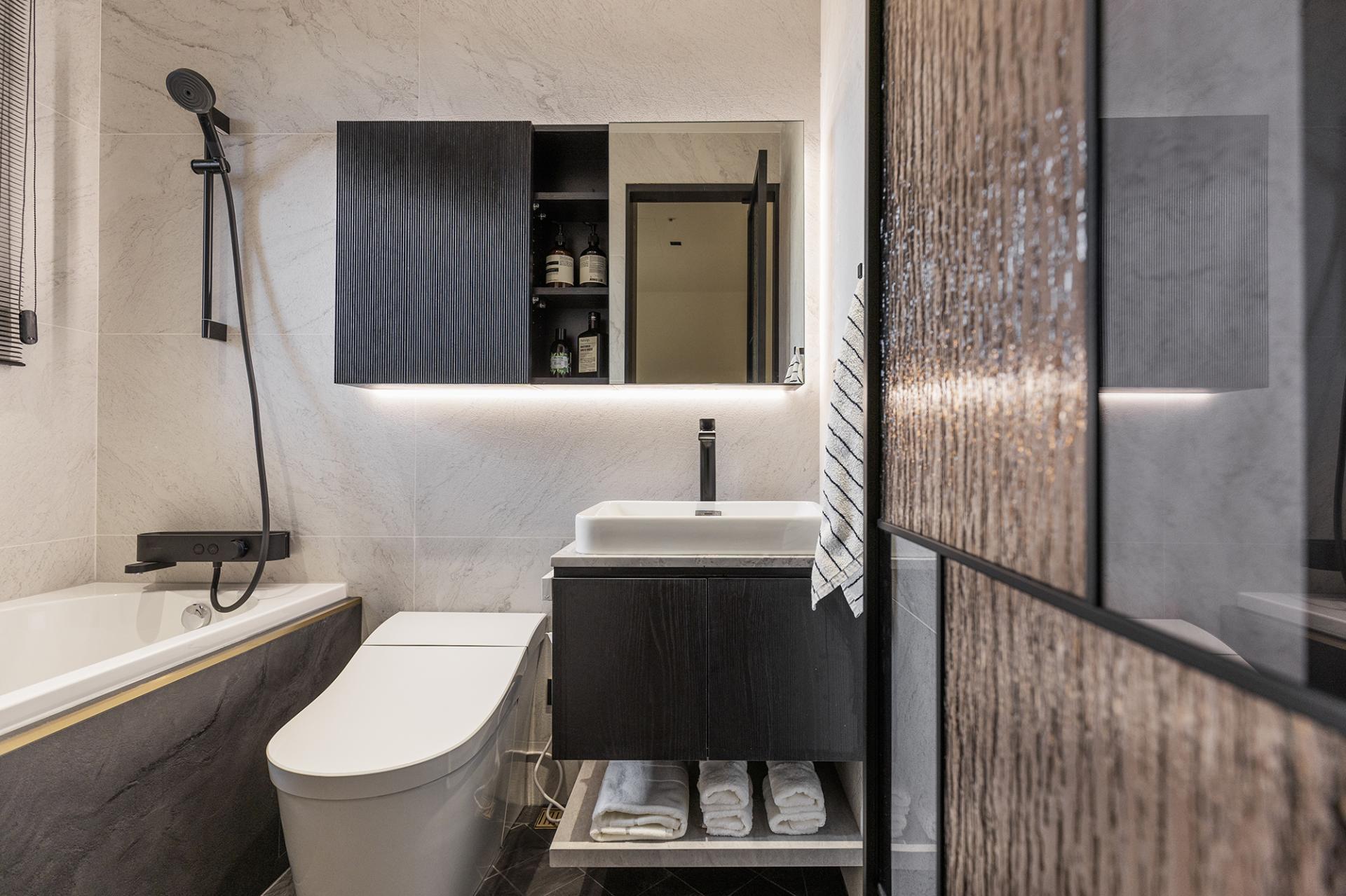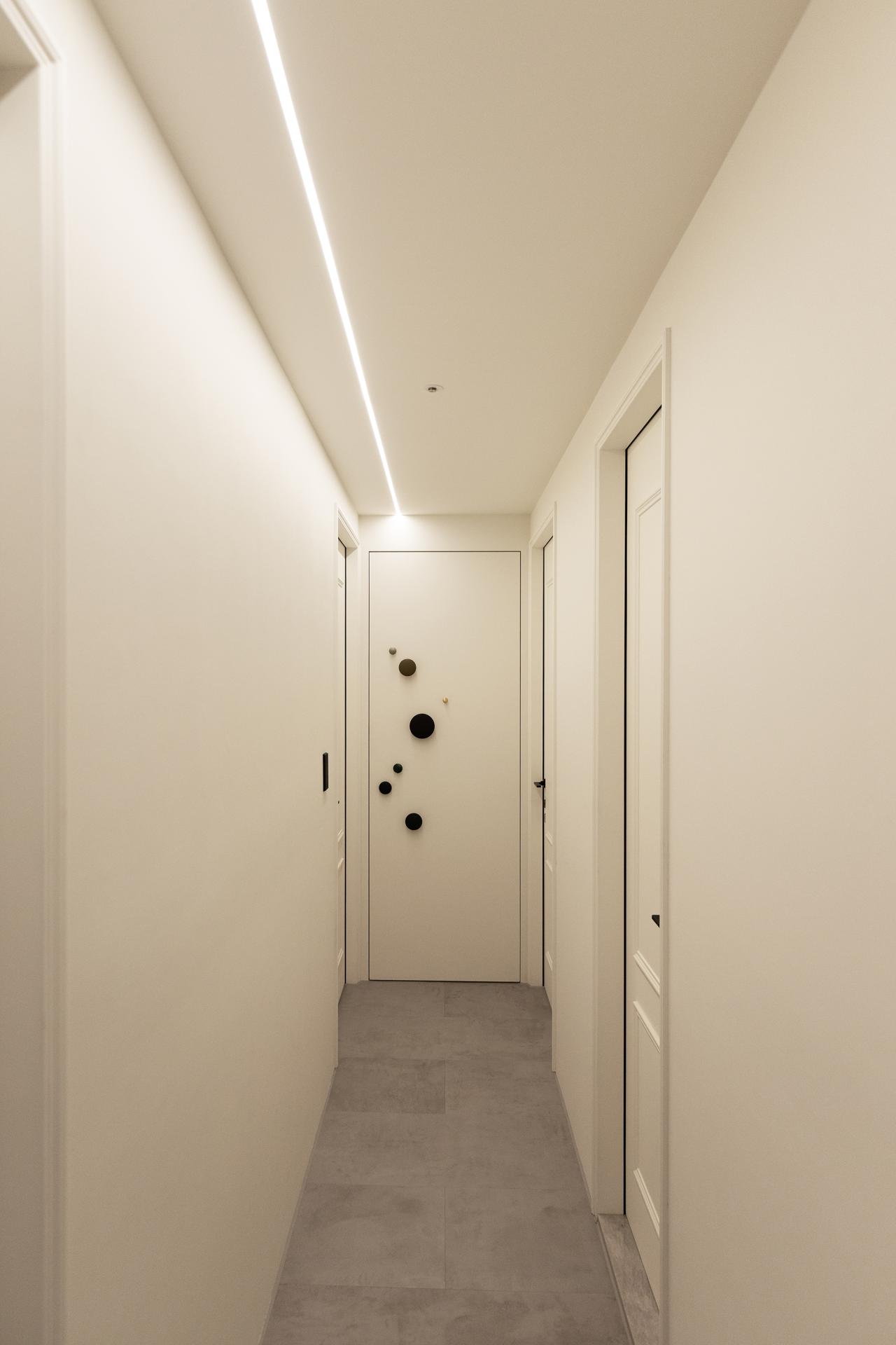 This thoughtfully crafted minimalist residential design employs a refined color palette of black, gray, and white, establishing a tranquil oasis where serenity emerges from simplicity. The design skillfully integrates elements of light, shadow, and linear forms, creating a harmonious balance throughout the space. Intriguingly, linear light strips gracefully extend from the ceilings and walls, guiding visual flow while simultaneously crafting distinct atmospheres that transform from day to night. Furthermore, the careful maintenance of ample negative space enhances the overall aesthetic, intentionally free from superfluous decoration. To elevate the sense of purity within the environment, concealed storage solutions are seamlessly incorporated, allowing residents to embrace a lifestyle characterized by refined quality and uncluttered elegance. In essence, this design not only prioritizes functionality but also invites a profound appreciation for the beauty of simplicity.