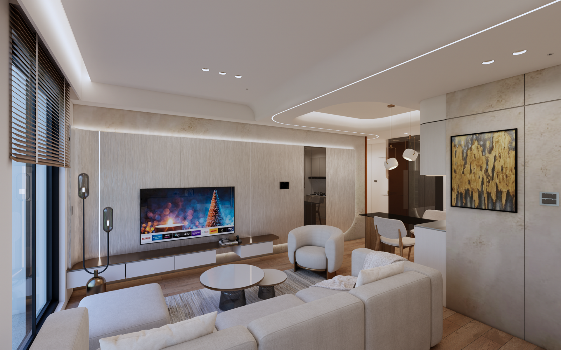 Located in the Tainan Guiren High-Speed Rail District, a rapidly developing urban node that still preserves distant views of Greater and Lesser Gangshan, the project stands at the intersection of city growth and natural landscape. From the thirteenth-floor site, the designers perceived not merely scenery, but a timeline where urban expansion and nature quietly overlap. The concept “Reflections Within” emerged in response to the residents’ desire for inner stability amid a fast-paced lifestyle. Guided by the principle of “following nature and removing excess,” the design deliberately steps back from visual dominance. Rather than asserting form, it employs restraint, blank space, and quiet proportions to invite mountain views, natural light, and stillness indoors, transforming the residence into a contemplative retreat where emotions may settle peacefully.